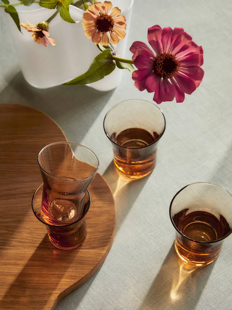 Now three practical sizes (12cl, 20cl, 28cl), perfect for different drinks, cocktails and beverages are introduced in a typical 1930´s glass colour, Rio brown. The Alvar and Aino glasses are available only during 2023.