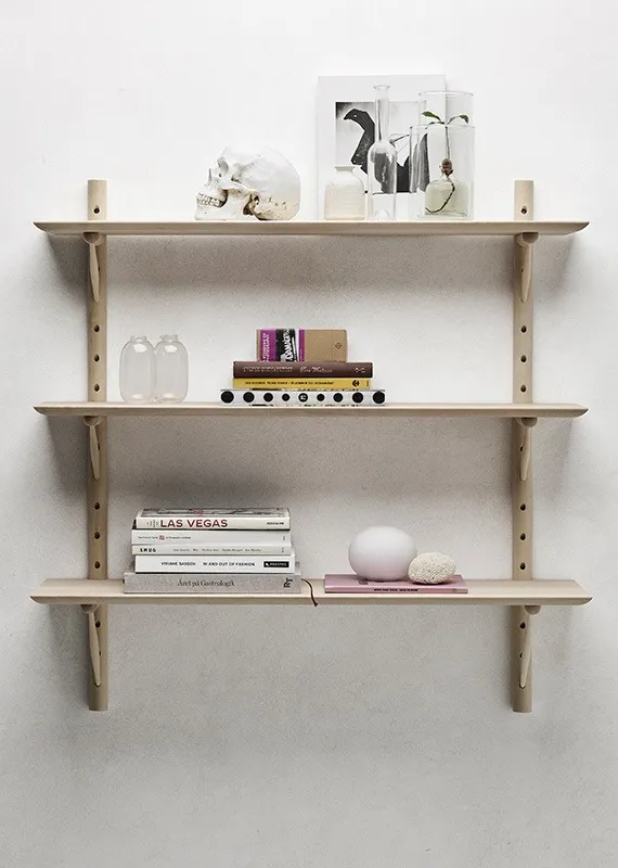 The initial idea for Ikon stems from the notion of combining the look and construction of traditional windsor chairs and applying them to a modular, wall mounted shelf system. Ikon is designed and optimized for conteporary production methods, with a modern look, iconic with a classic essence.