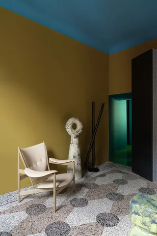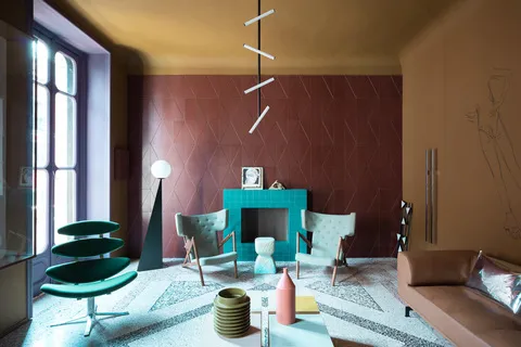 The interior is designed by Elisa Ossino Studio installing a curated selection of objects and custom furniture