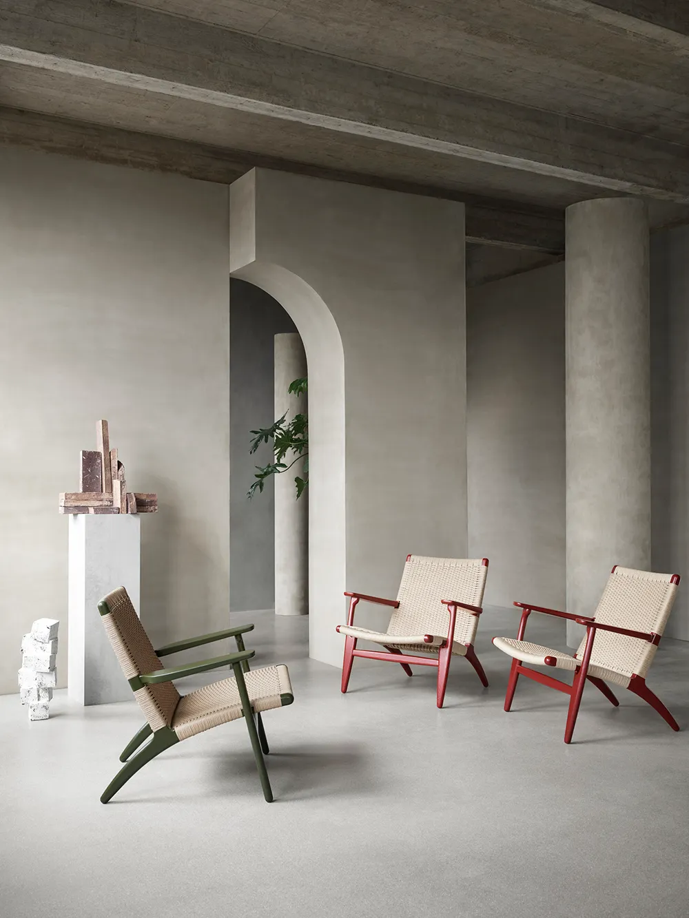 On this occasion, Ilse Crawford has dressed the masterpieces in five earthy shades that give a fresh perspective to the collection. The environmentally friendly, water-based colours all have a slightly transparent finish, which allows the chair’s original oak wood grain to shine through, creating a nuanced sense of colour and texture. The muddy, painterly tones nod to the raw beauty of the Nordic landscape and they are intended to work both as a group and independently.