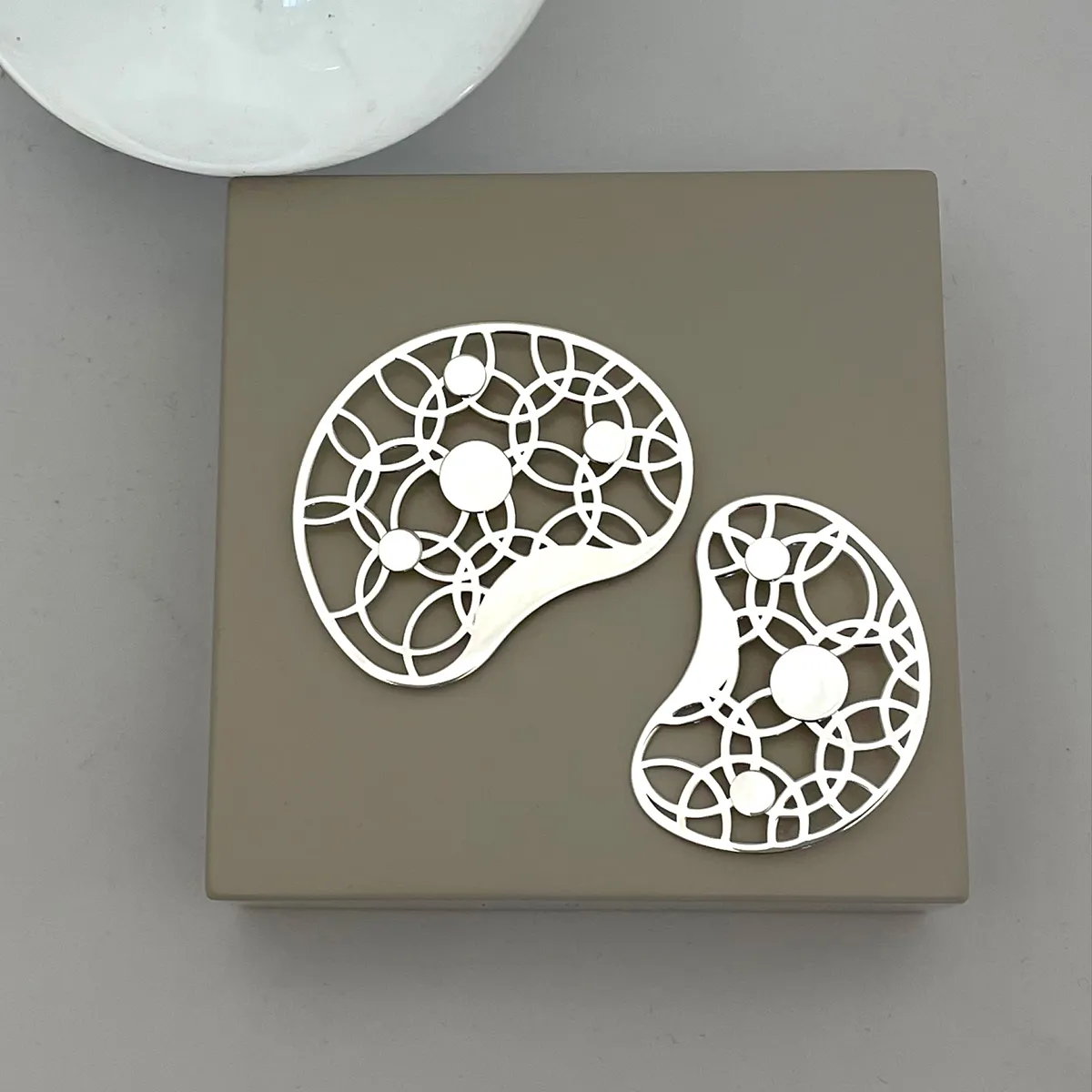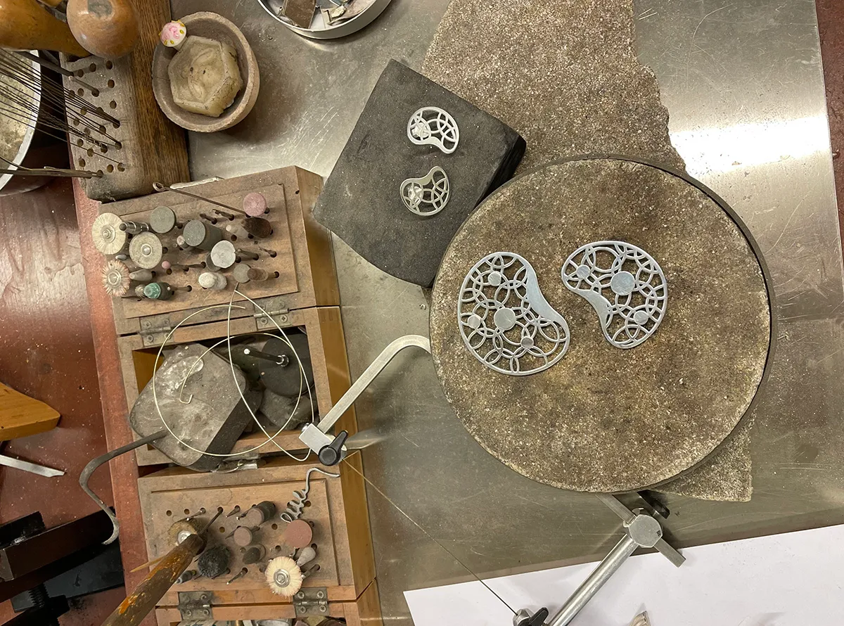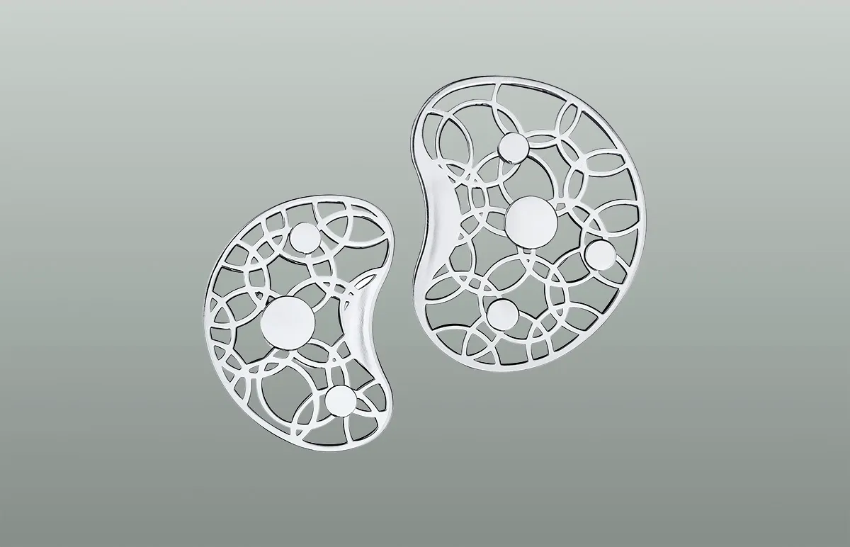 Ingegerd’s collection ”Joy” consists of a brooch in two sizes and a pair of earrings. The bean-shaped jewellery is made in silver, and the brooch is attached with a magnet.