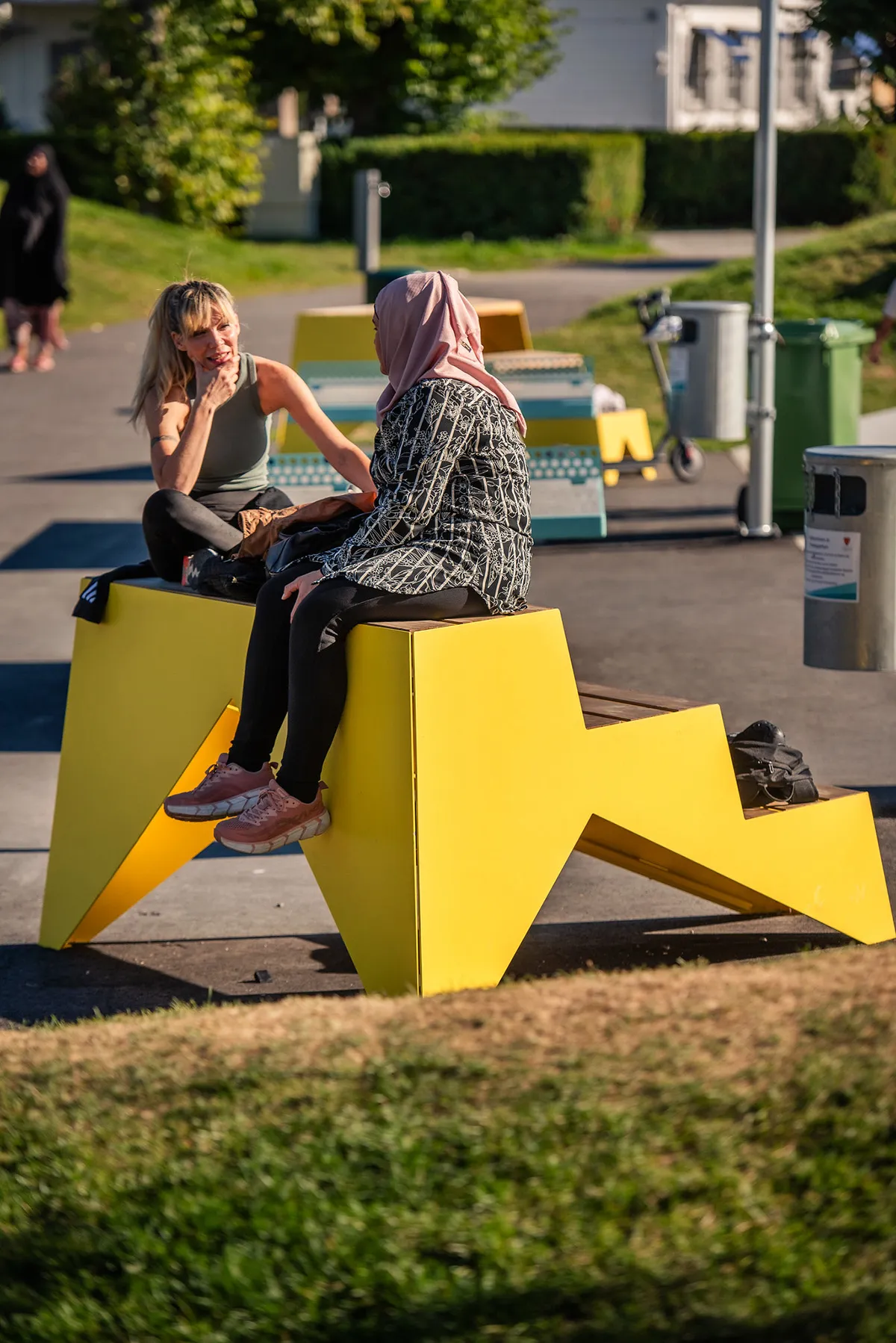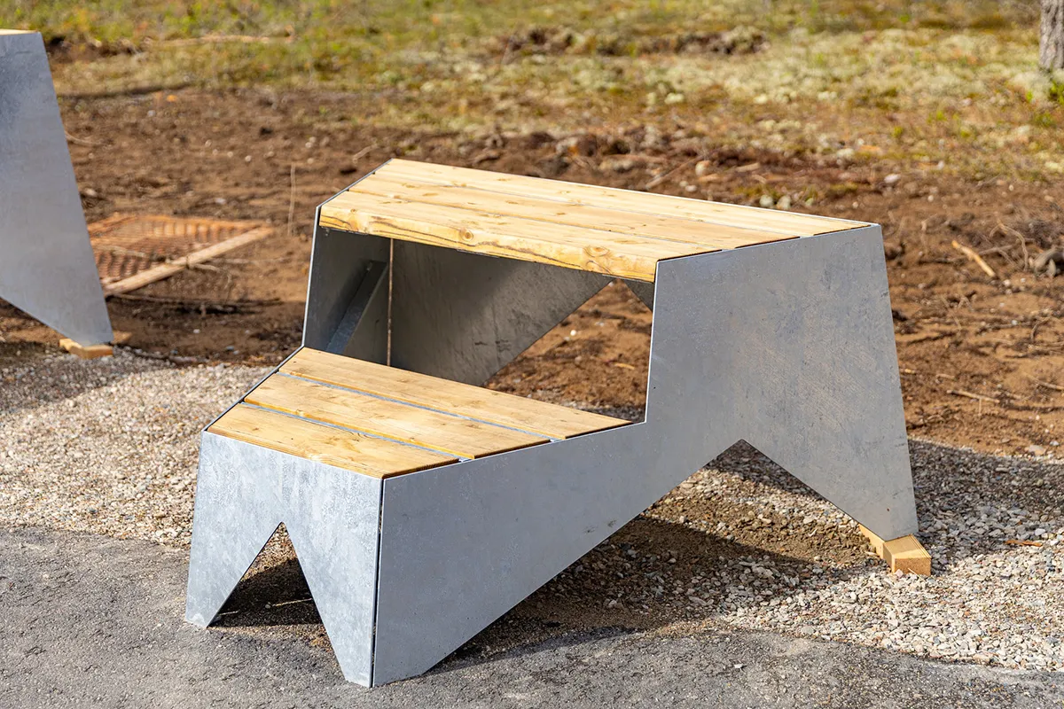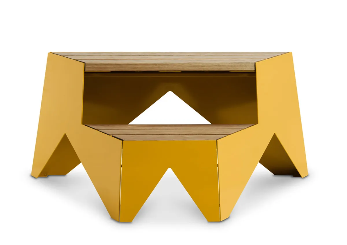 The STOOP picnic bench evolves the concept further by combining the characteristic stepped seating with a practical dining surface. It’s a social piece of furniture that fits perfectly in parks, schoolyards, and other public environments where people naturally gather. The picnic bench welcomes users of all ages and creates an informal meeting place that encourages both dining and conversation.
