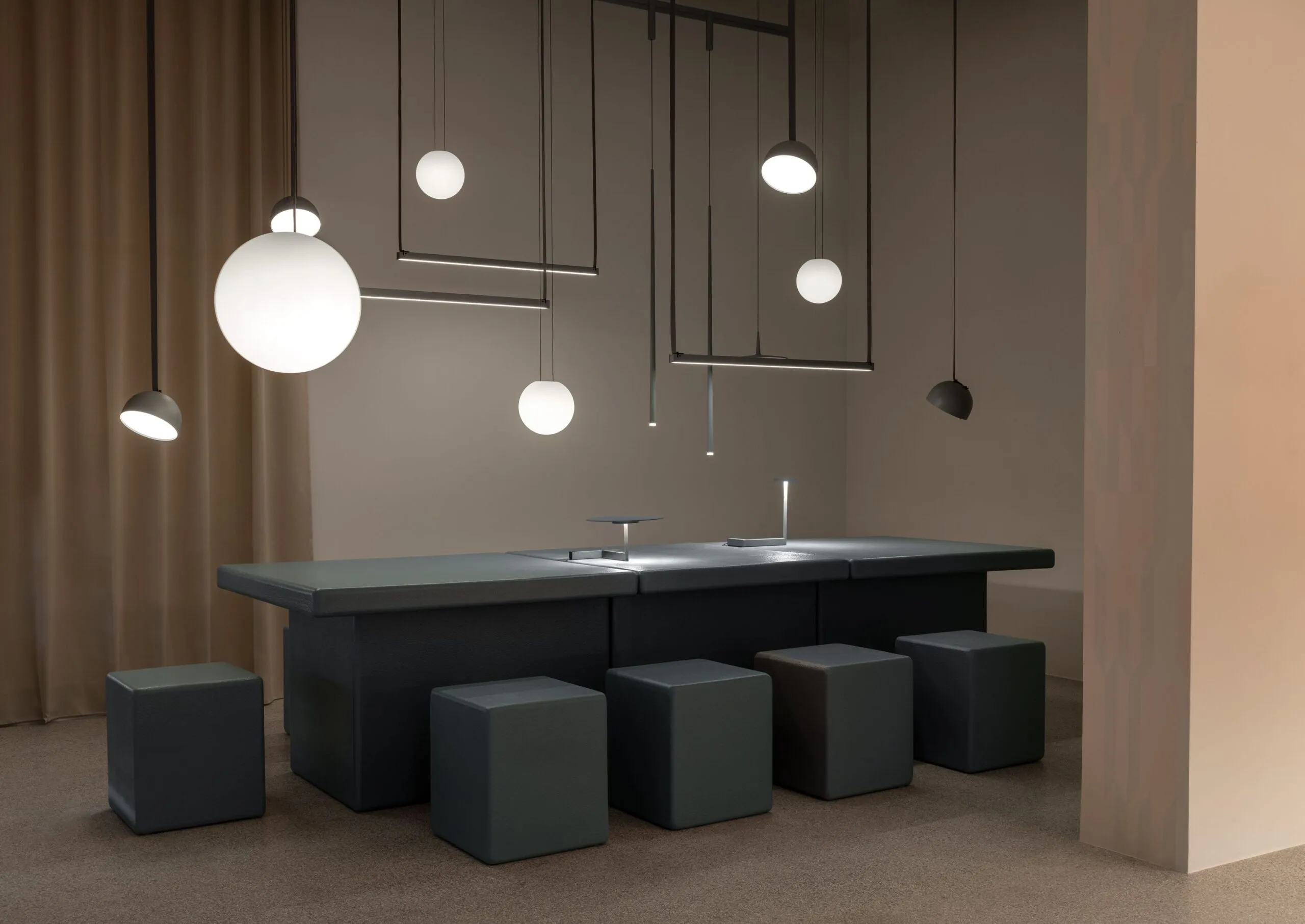 What set this presentation apart was its interactive nature – guests were encouraged to engage physically with the space, touching elements and fully immersing themselves in atmospheres crafted by Vibia’s sophisticated lighting arrangements. This tactile journey fostered a deeper appreciation for how light and color fundamentally shape our perception and emotional responses to spaces.