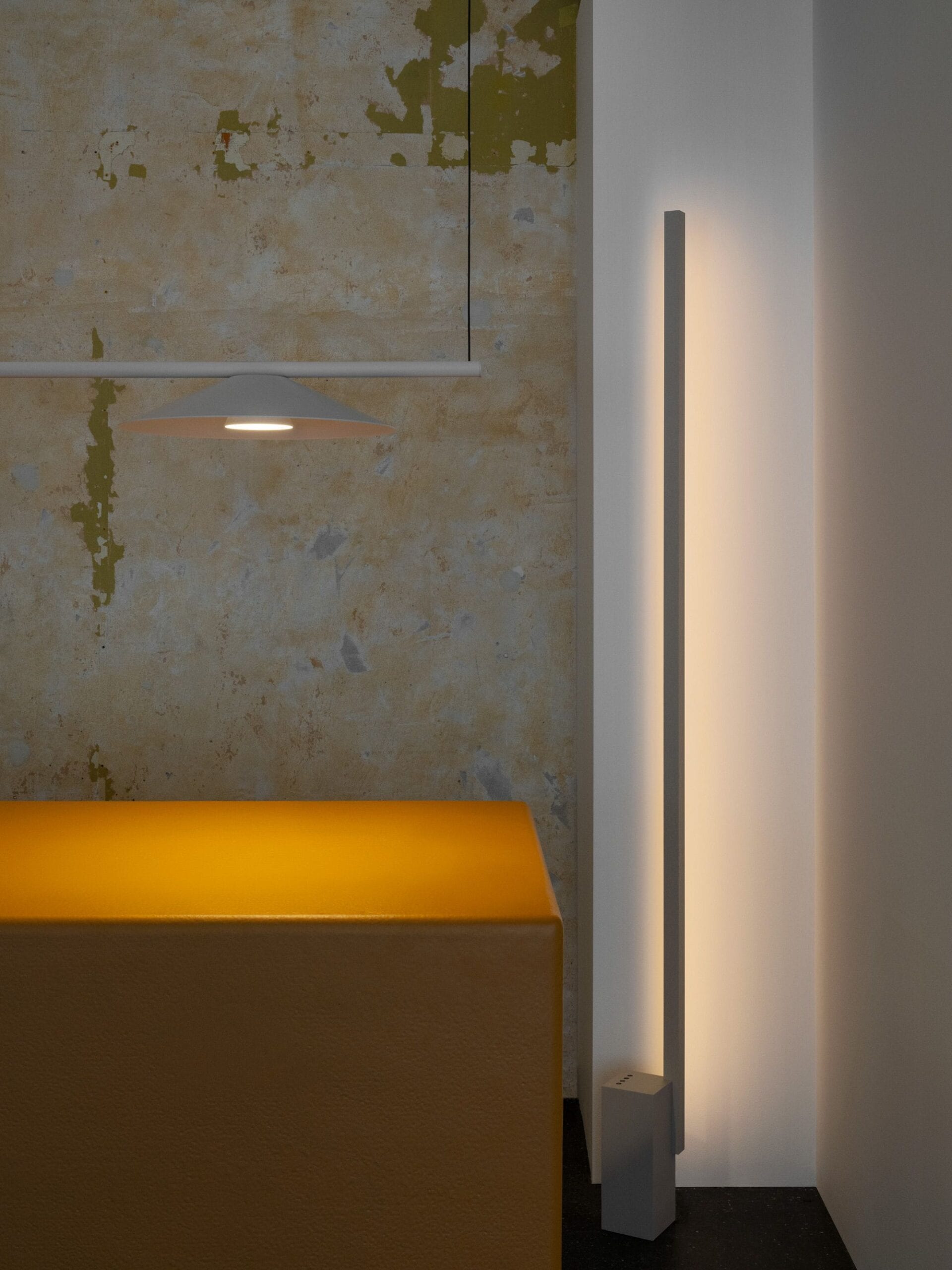 Floor lamp, Linear pendant, Outdoor bollard At first glance a distinct geometric silhouette. On closer …