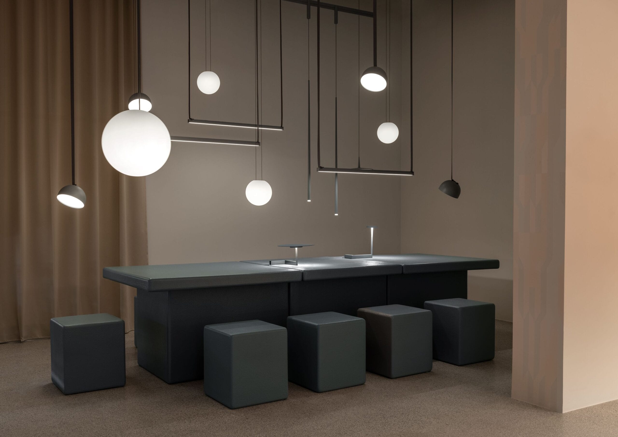 What set this presentation apart was its interactive nature – guests were encouraged to engage physically with the space, touching elements and fully immersing themselves in atmospheres crafted by Vibia’s sophisticated lighting arrangements. This tactile journey fostered a deeper appreciation for how light and color fundamentally shape our perception and emotional responses to spaces.