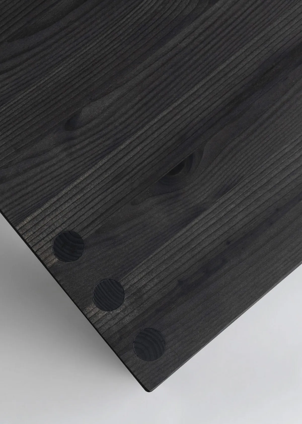 Vaarnii’s Black furniture is made from the same materials as our natural finish objects. A deep black stain, created in-house, is added as a final stage of the production process. The stain is long-lasting and hard-wearing and has been developed to reveal the decorative wood grain beneath. As the pine wood’s natural hue deepens with age, the black stain finish will also gain richness.