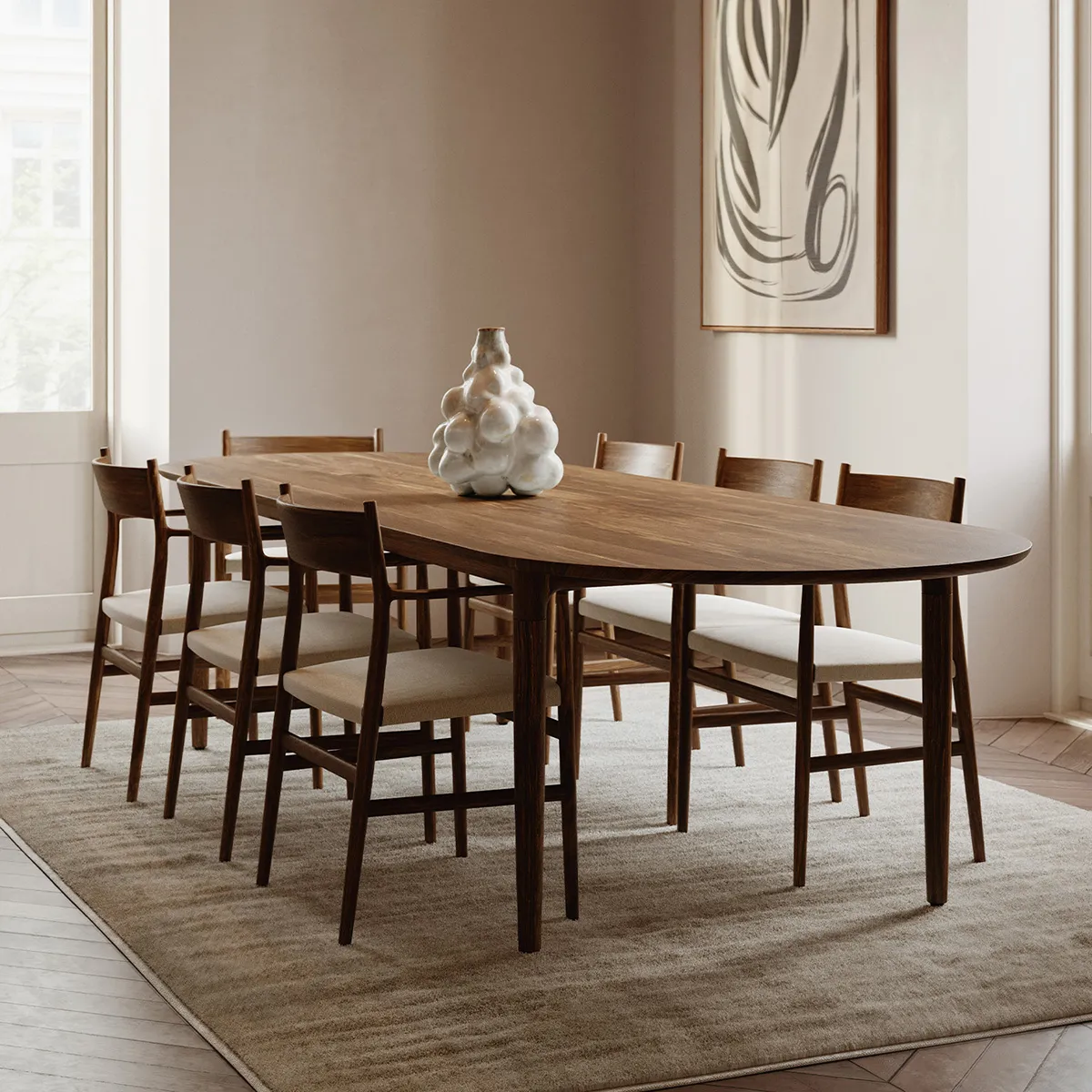 With a wider and longer tabletop and optional rounded ends, the Arv Plus Table offers additional seating—two extra seats at each end—and is available in multiple sizes, comfortably seating 8 to 16 people.