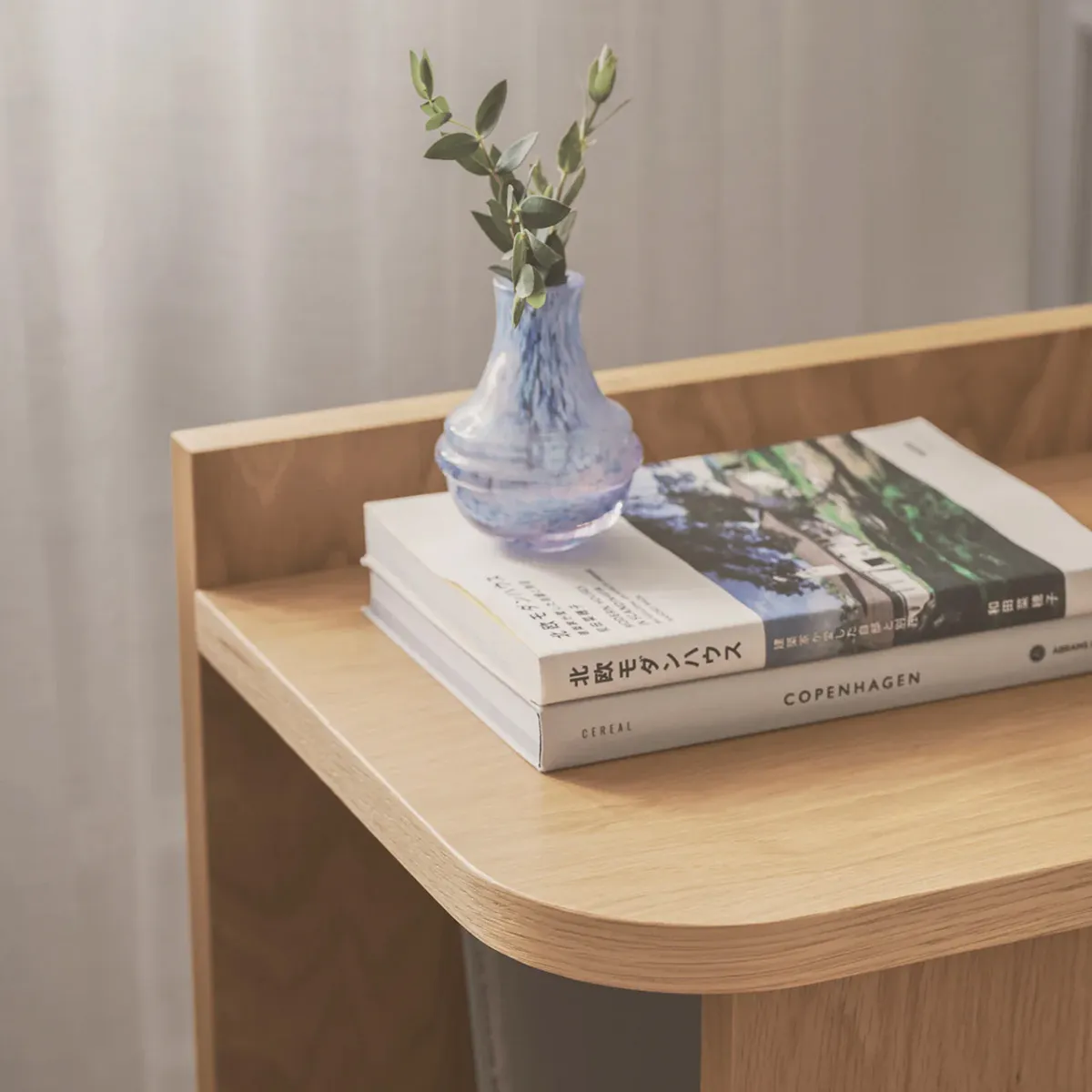 Thanks to Ismo’s versatile design, the table is ideal for a wide range of uses. It can function as an elegant side table in the living room or as a practical bedside table in a hotel room. A special feature of the design is that the table appears closed from the front and open from the side, adding an extra layer of refinement to the design.