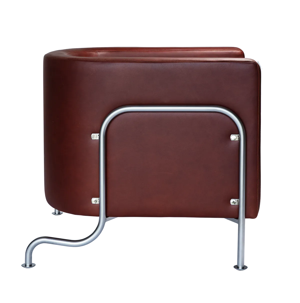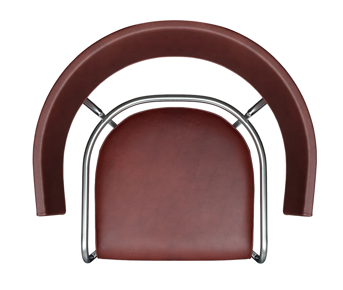 Chair GA-1 has a frame in chrome-plated or matte chrome-plated Swedish steel. Foot in chrome-plated or matte chrome-plated turned brass. Seat and back of molded birch, upholstered in vegetable-tanned leather. Back attached with screws in nickel-plated brass.