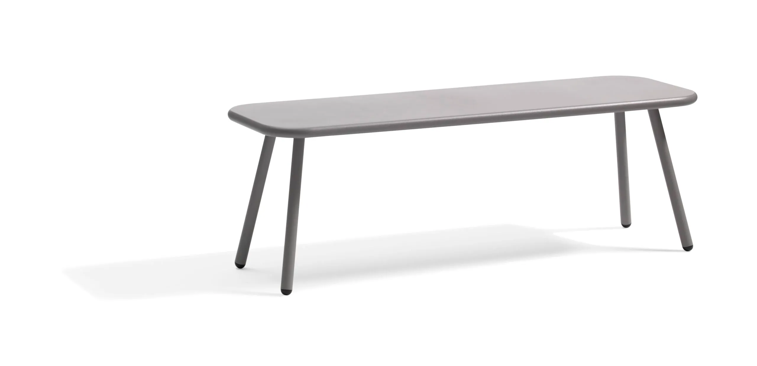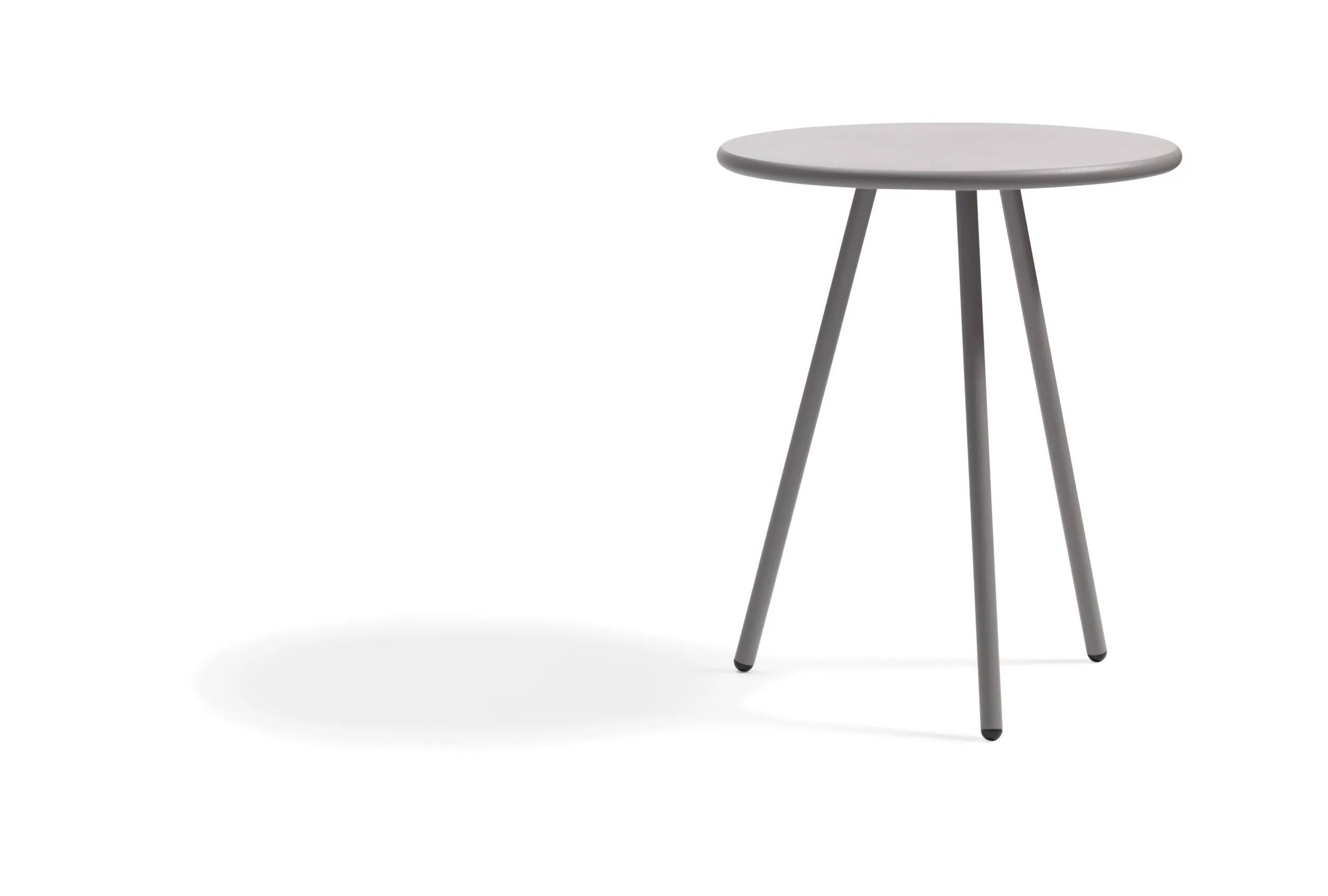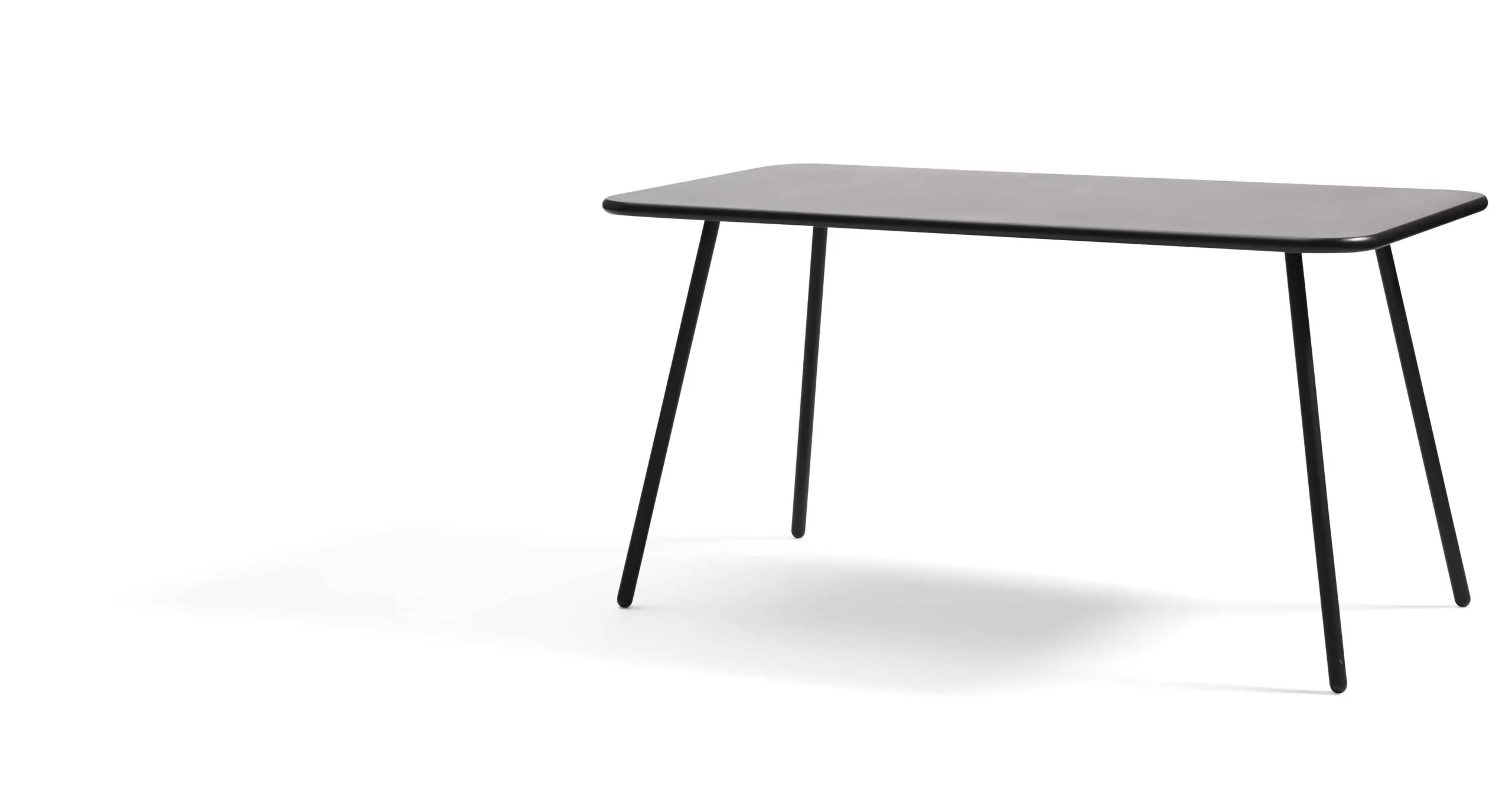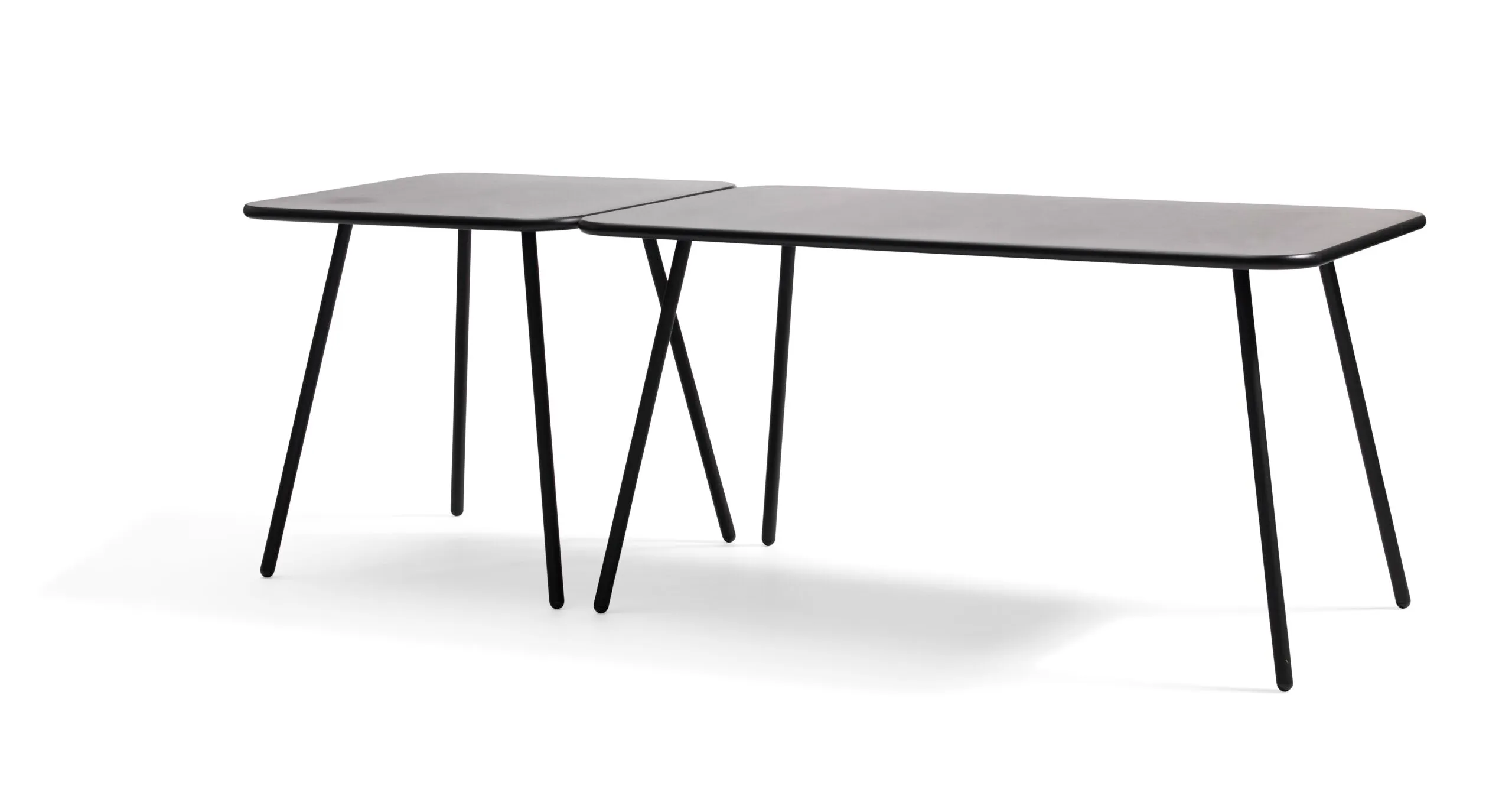 Frame in galvanized and lacquered tubular steel. Seat of moulded polyurethane foam (PUR). Kaffe table can be dismantled. Legs of galvanized lacquered tubular steel. Tops of solid wood or powder-lacquered outdoor grade MDF. Plastic feet.