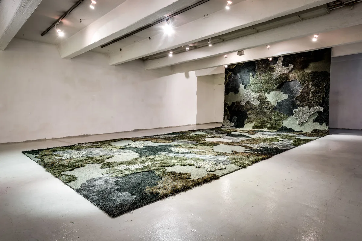 The hand-tufted rugs, made of wool and linen, were developed in a collaboration between Louise Hederström and Kasthall Design Studio. The idea came from six different materials by designer Gunilla Lagerhem Ullberg, who was developed during Gunilla’s years as creative director at Kasthall. The result is a large-scale camouflage pattern with variations in height and structure inspired by the shifts and shapes of deciduous forests.