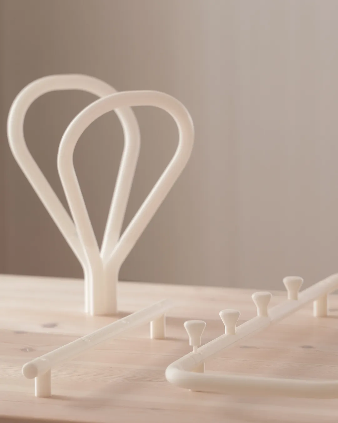Designing new pieces that fit within the Classic family felt like a good and fun challenge. The hat rack is such an iconic and recognizable item with its simple, straightforward form, made from bent metal tubes and a flat net. Our design take has been to contribute and expand the range with entirely new and independent designs, utilizing some of the Classic materials and dimensions – but also add something new, pointing in a new direction.