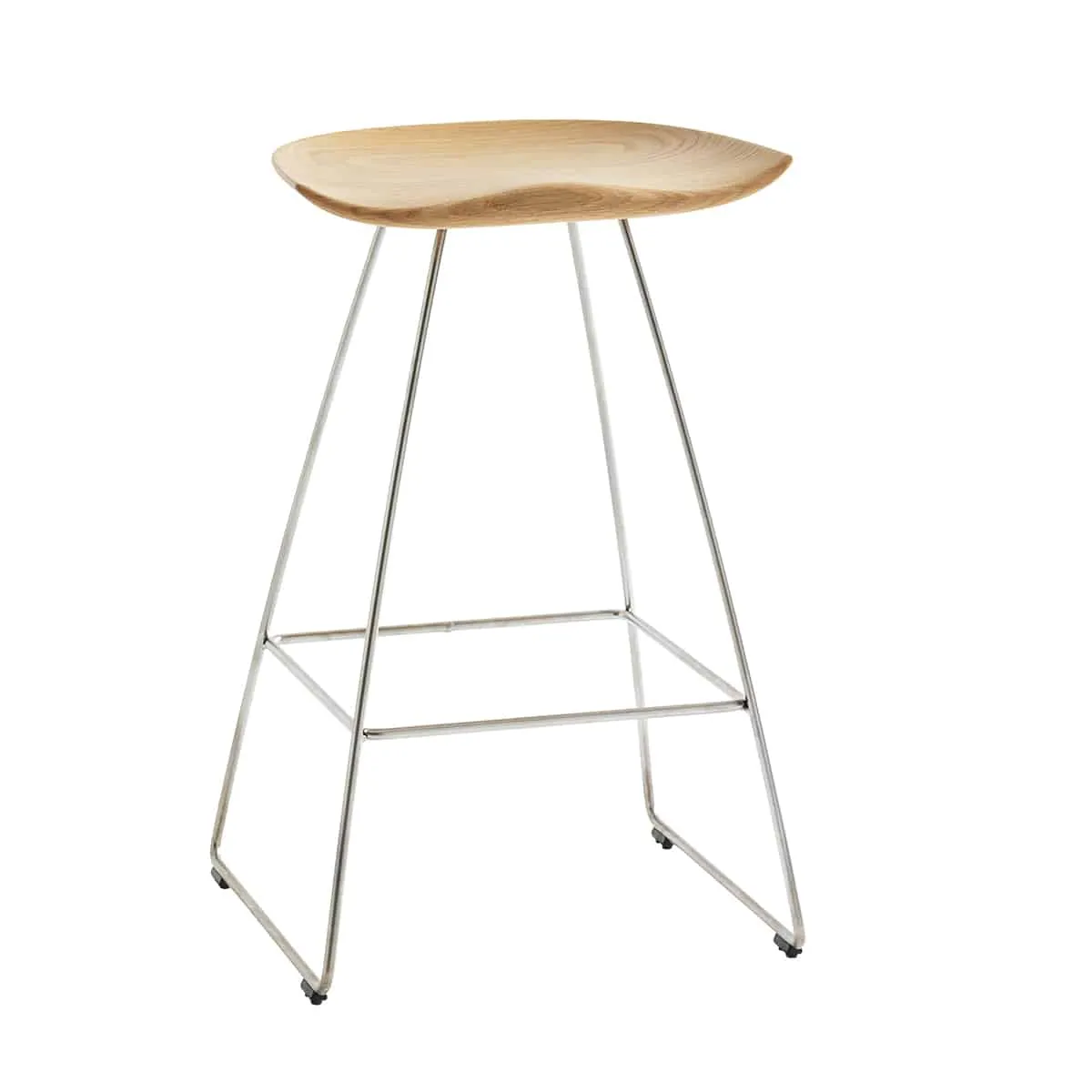 The inspiration for Kaz came from a tractor seat, here refined in the form of a stool that combines a contemporary look with timeless functionality. A wooden seat on an underframe of sturdy steel rod gives the stool a minimalistic expression that draws further attention to the wooden seat. The stool comes in a choice of three heights. Kaz is the first product that Nils-Ole Zib designs for Karl Andersson & Söner.