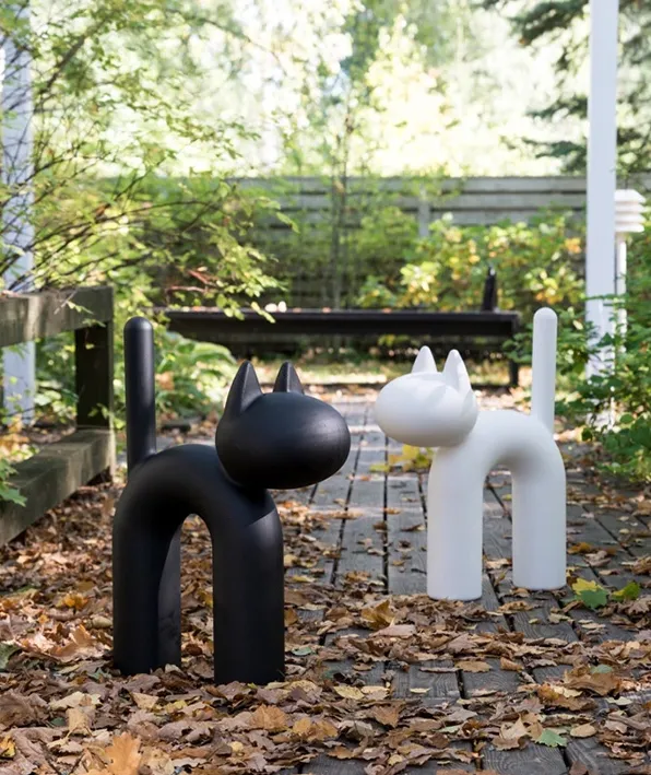 Kisu is the newest addition to aarniooriginals.com collection, designed by Eero Aarnio. Kisu is a decorative piece of interior design suitable for both indoors and outdoors. This cat is made of polyethylene and available in two colours, black and white. The black Kisu is produced 100% of regenerated polyethylene made from the factory’s own defected products and waste material. Kindly note that Kisu is a decoration element, not a toy.