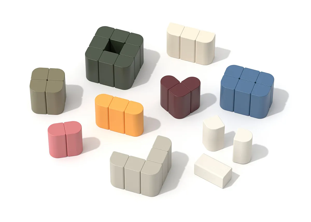 “The design is inspired by wooden building blocks, one of the first things we play with as kids. Our design vision is that KLOSS will function the same way – as creative play blocks for interior designers and architects! A recycling furniture designed to be accessible and practical in all imaginable interiors and situations, contributing and encouraging a good recycling culture.”