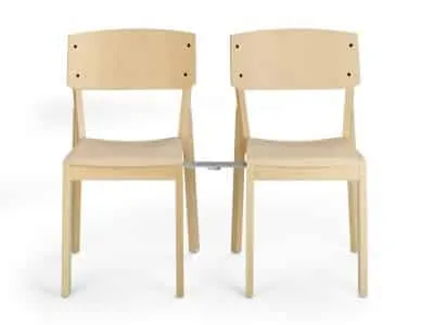 The stackable chair and armchair originates from a construction concept – one wooden hub joining together frames, legs and back posts. The hub has been the central focus on which the design has been based and which gave the chair its characteristic expression.