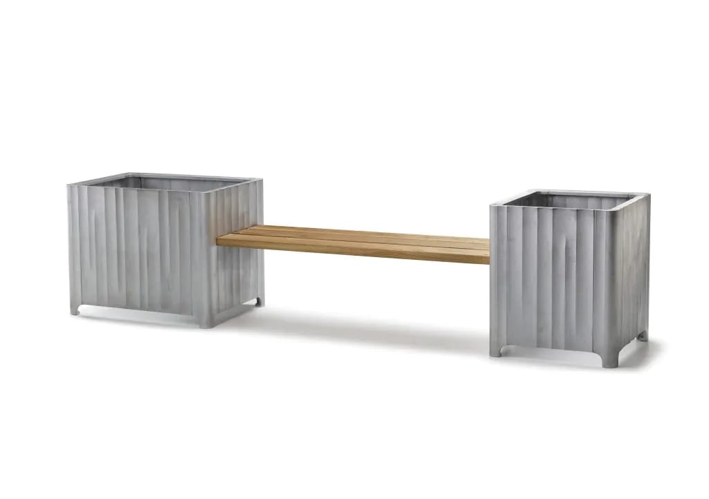Adding 2023 to the success of the Kolonn family of planters, is a bench. Designed to sit between two Kolonn planters this bench enables easy and creative compositions of vegetation and seating. Kolonn combines modern design with traditional craftsmanship. Kolonn is manufactured in Byarum, Småland, hand-cast in 100% recycled aluminum, modern craftsmanship. At Byarums Bruk, they adhere to a traditional production of aluminum casting. All shaping is done in raw sand that is constantly being reused. Products are cast in a mold made of sand, clay, soot, and water, all free from chemical binders. Sustainability and longevity for real.