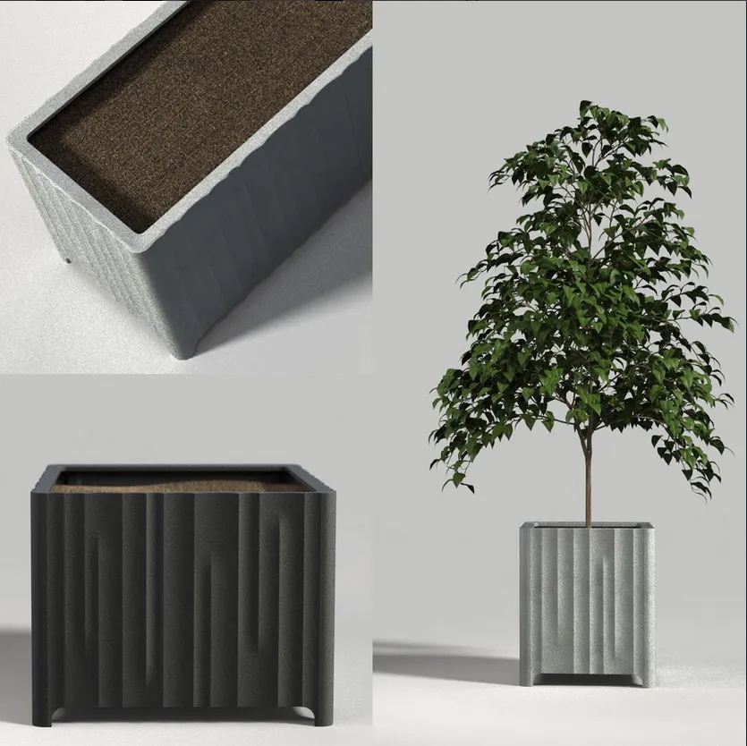 Kolonn is a modular set of planters aimed for the public outdoor space. By creating separate corners and sides, we can offer Kolonn in various sizes in depth and width creating multiple option. As the corner is separate we could give the corner piece a roundness fitting the character of the design and hide the split line along the vertical pattern.