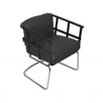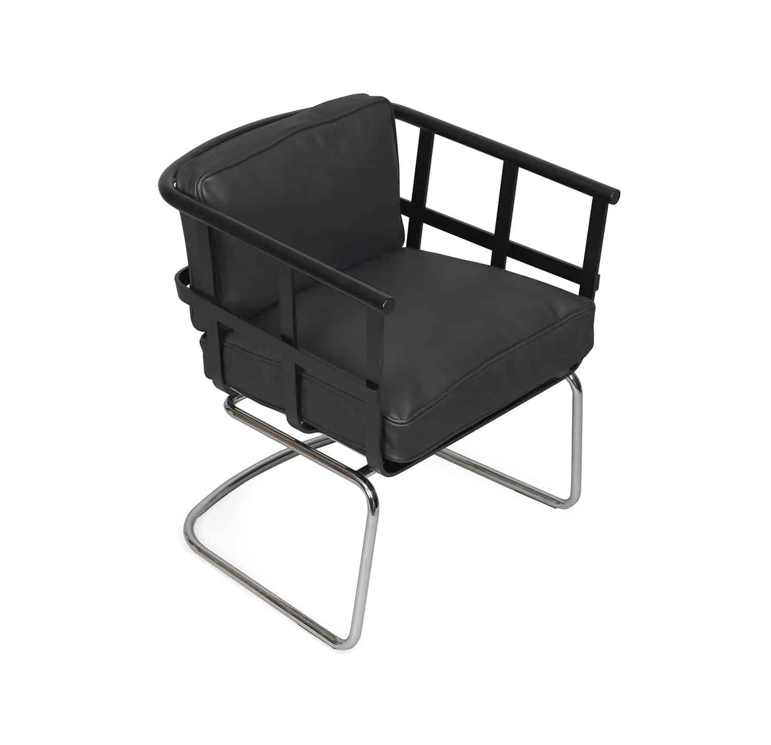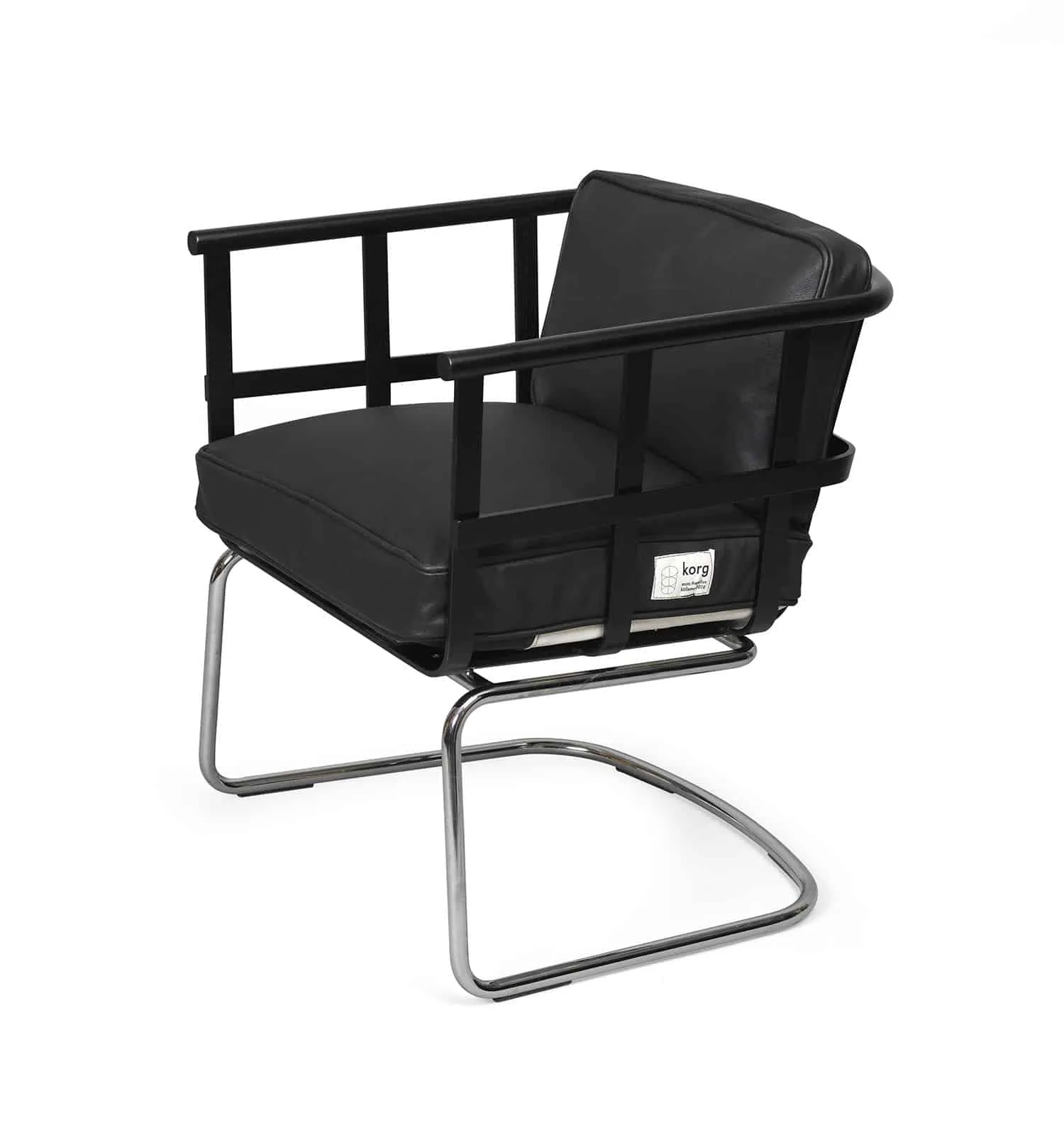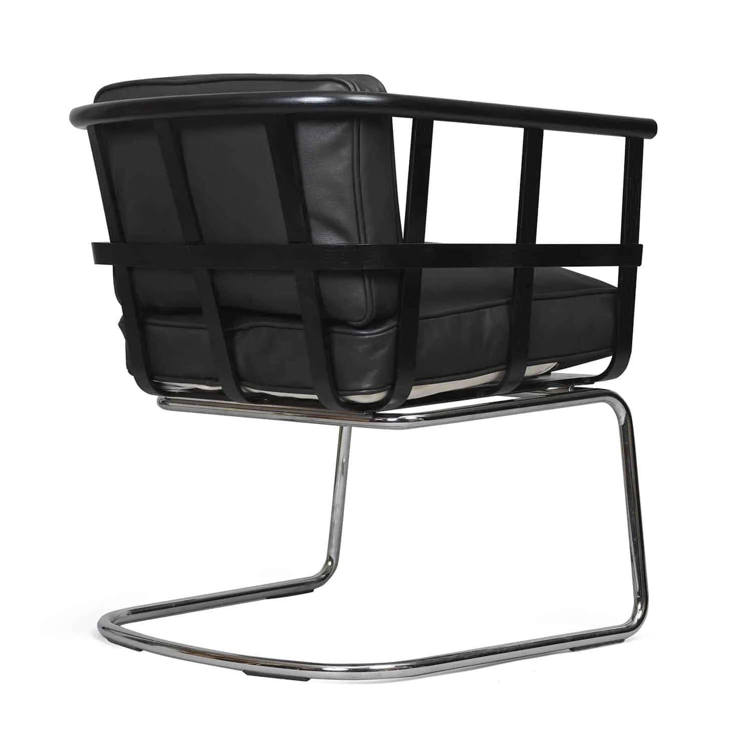 Stålstativ i krom eller koppar. Formpressat sittskal, kuddar i dunblandning.