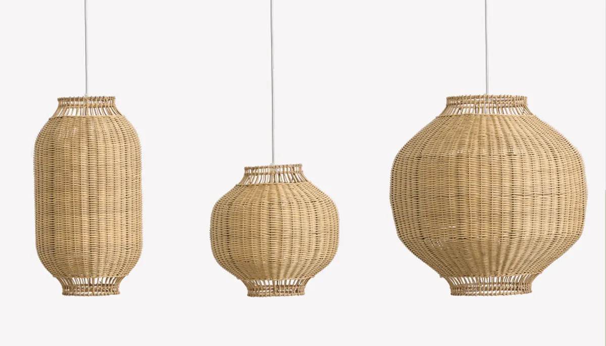 The lampshades are handcrafted in rattan with an inner steel frame giving it a good weight and stability.