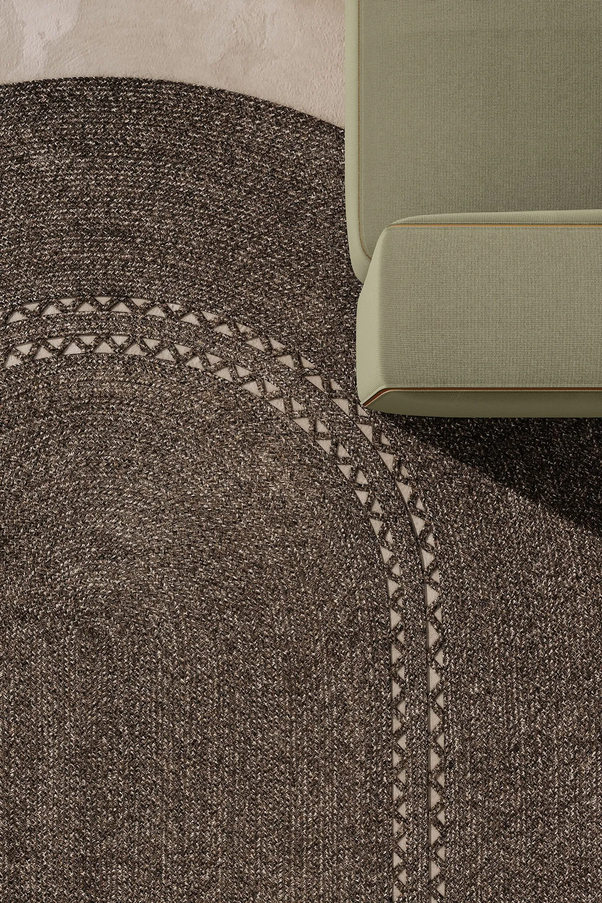 Handcrafted from 88% recycled post-consumer PET ropes, the rugs feature delicate irregularities reminiscent of the surfaces of minerals and stones. The design process involved extensive experimentation with different materials and braiding techniques, resulting in durable rugs that are visually unique and comfortable. Each rug is made using a stitching technique that assembles the braided ropes with minimal production waste.