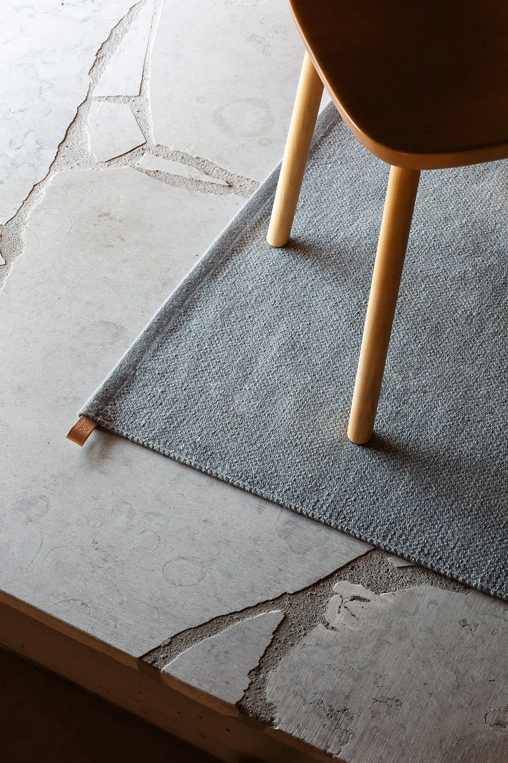 The Landskab collection includes four design variants: two flatwoven and two hand-tufted rugs. The flatwoven rugs, Gryn and Korn, are described by Manz as “very thin, dense, dry, and hard like crispbread” and “coarse, robust, and thick,” respectively. The hand-tufted rugs, Spire and Ålegræs, have different textures and heights, giving them distinctive and lively expressions.