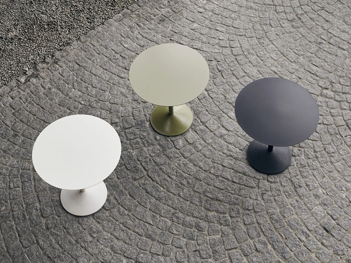 Lara’s weight and steel construction open up a variety of scenarios where it can be used, while its stone base brings a soft, natural design flourish.