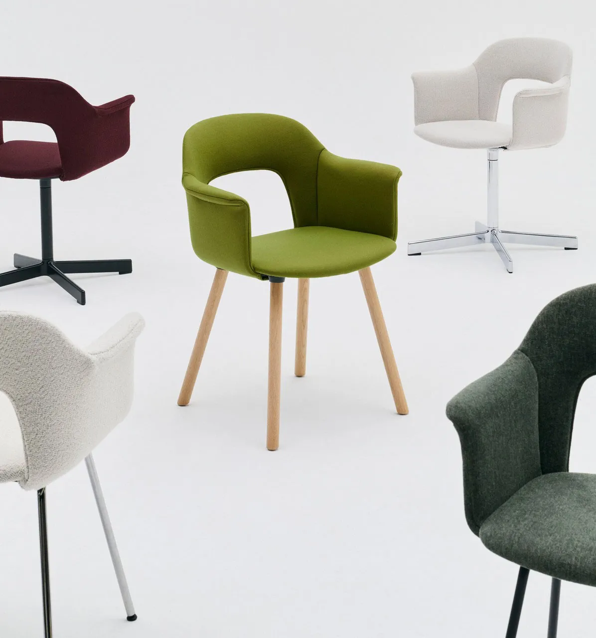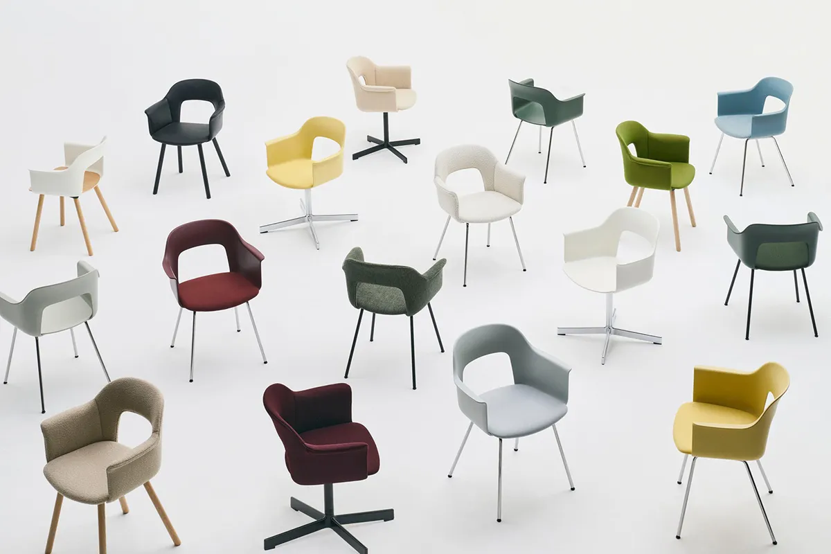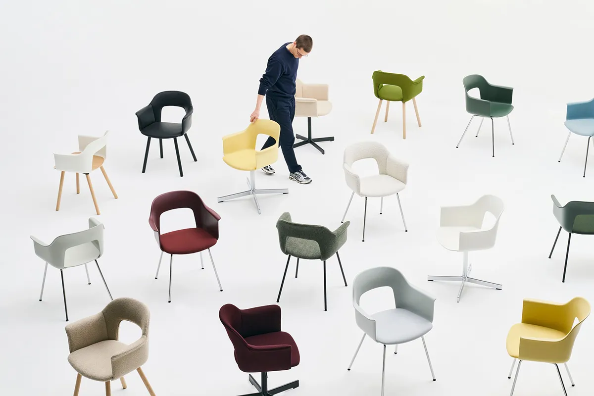 Designed for HAY by Julien Renault, Layout Chair brings together innovation, comfort, and circular thinking in a versatile, customisable seating solution. Its open-back shell defines its form, introducing a sense of lightness – both visually and physically – while offering natural, responsive support. Crafted from at least 96% post-consumer recycled plastic, each component is designed to be disassembled, repaired, and renewed – making refurbishment simple and extending the chair’s life. More than a standalone object, Layout is made to adapt to the space it inhabits. With countless combinations of shells, bases, and legs, it transitions effortlessly between offices, public spaces, and domestic settings – delivering comfort, flexibility, and a refined expression wherever it is placed.