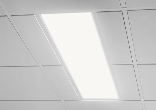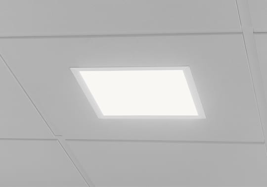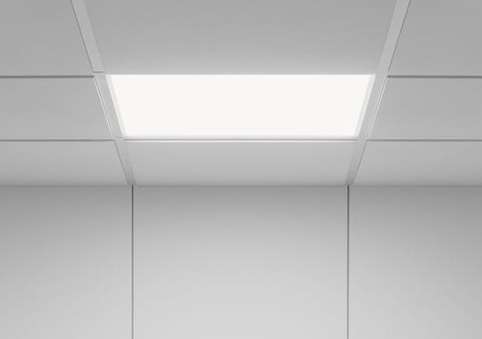 Level is a discreet and minimalist ceiling lamp available in three sizes and mounted directly in the ceiling suspension system, designed by Olle Lundberg.