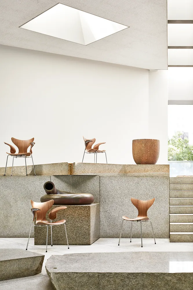 On the 50th anniversary of the design, Fritz Hansen introduces the Lily™ chair in sculptural Walnut veneer with classic chromed legs.
