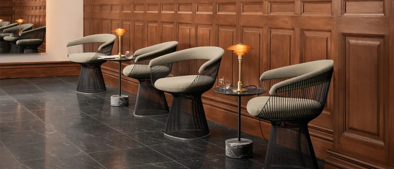In the Limited Edition of Poul Henningsen’s PH 2/1 Table, the design and materiality of the elegant classic is paired with the illustrious amber coloured glass shades, known for their distinct ability to create instant ambience in any space.
