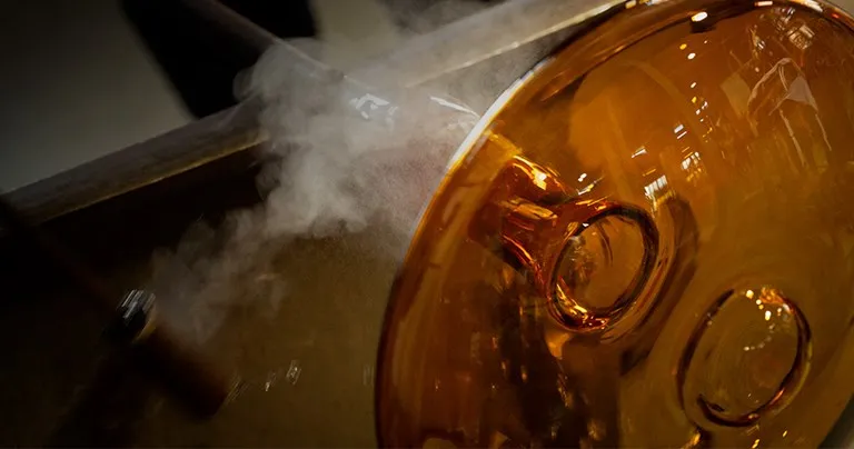 In the late 1920s, Poul Henningsen and Louis Poulsen introduced coloured glass lamps to attract new customers, but perhaps the golden ambience that the shade created also reminded the designer of the old days before electricity became standard in every home, sitting at night in the soft glow of kerosene lamps.