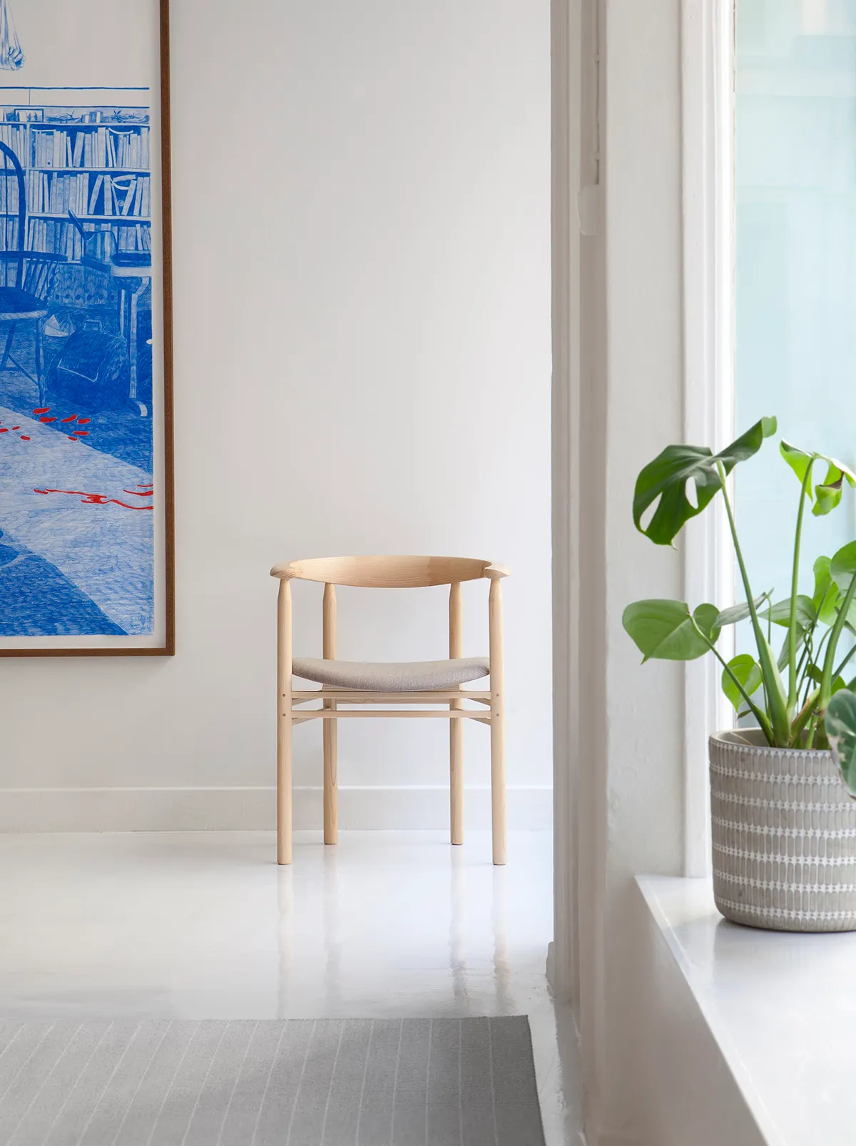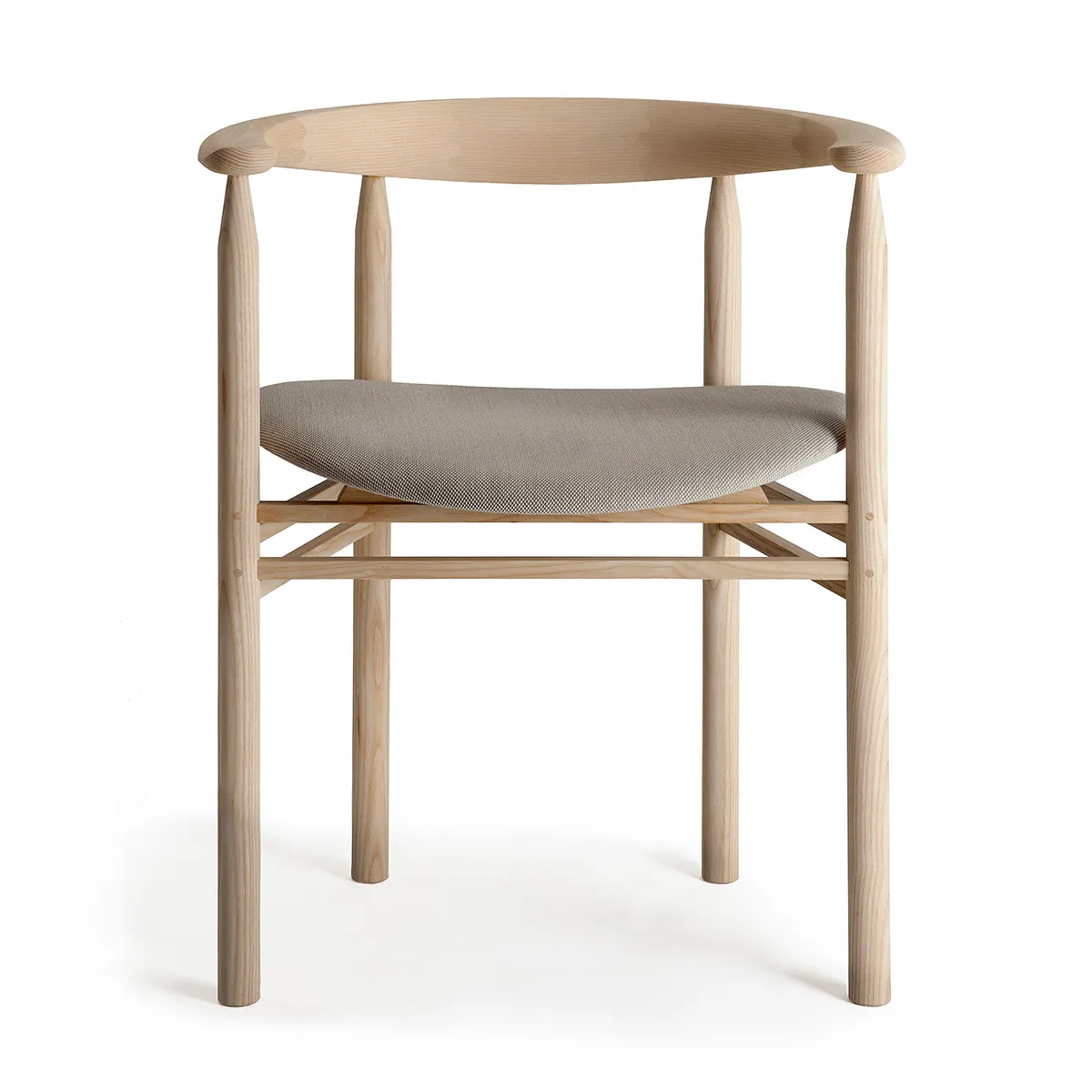 Made from northern European ash with upholstered seat, this versatile chair suits dining rooms, meeting spaces, and professional environments. Merz’s unique cross-cultural background brings Swiss precision to Finnish design sensibilities, creating timeless furniture that celebrates sustainable materials and traditional joinery techniques.