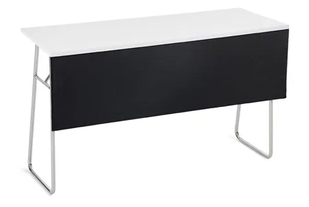 A front panel can be added to the table in any desired color or in a black mesh. The front panel reinforces the integrity of the person sitting at the table and provides more design possibilities.