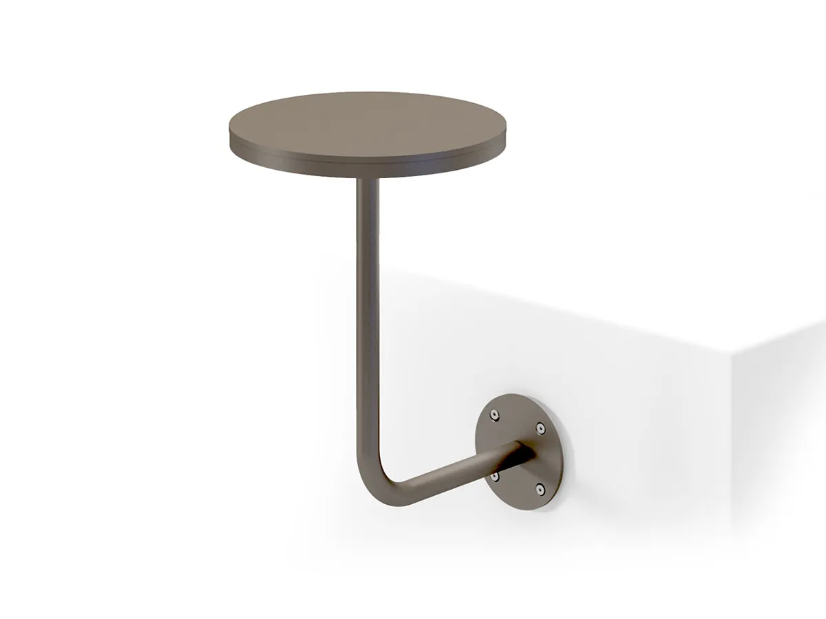Ljusnan is an attachable small table with illuminated bottom that can be mounted to other products, such as walls, standalone benches, or other fixed installations where a tray or surface is needed for placement of everyday objects or support.