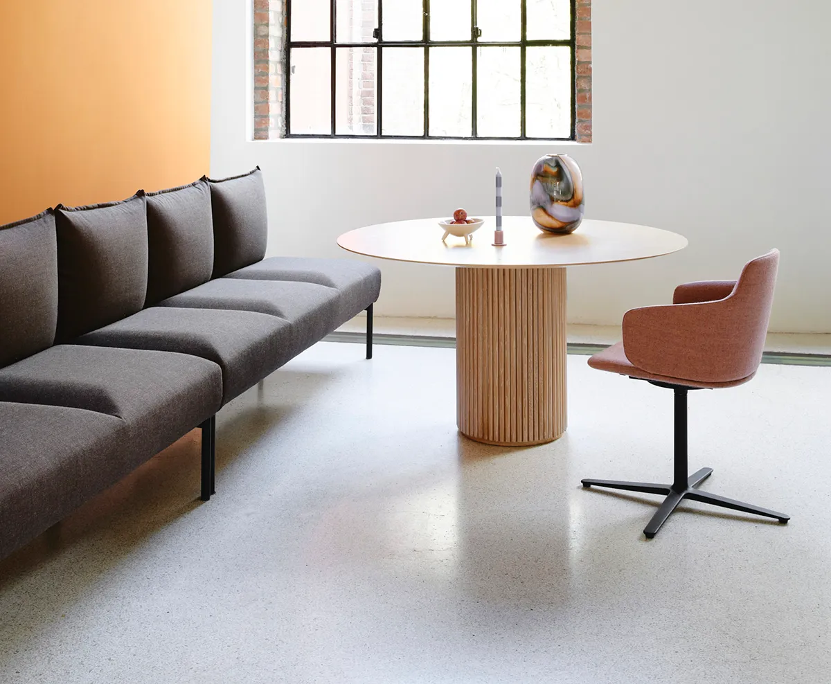 Lobby offers many creative solutions and can be adapted to most situations. It can be adapted to both smaller, intimate meeting situations and large gatherings. Due to the smart coupling fittings, the arm and back parts can be moved and the different modules can be switched around. The sofa has removable covers on the seat, back and armrests for easy upholstery, which gives the furniture a very long life.