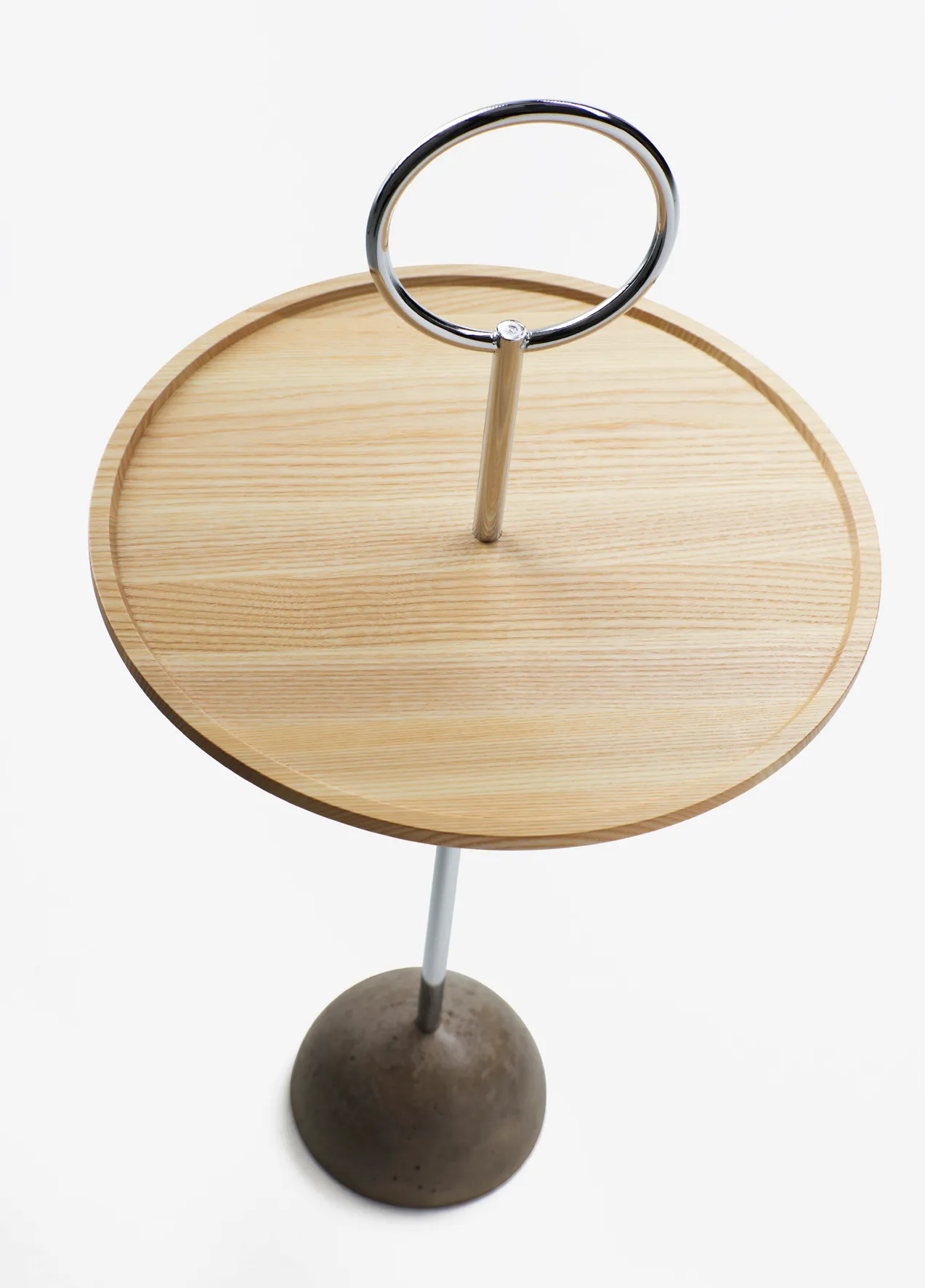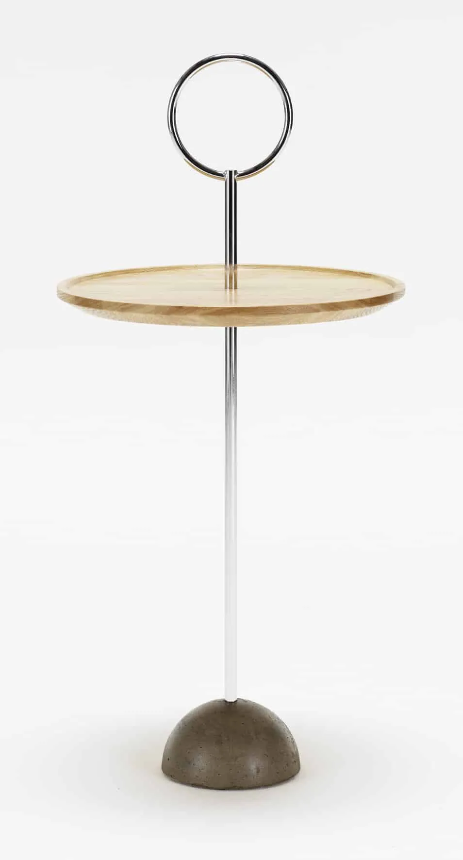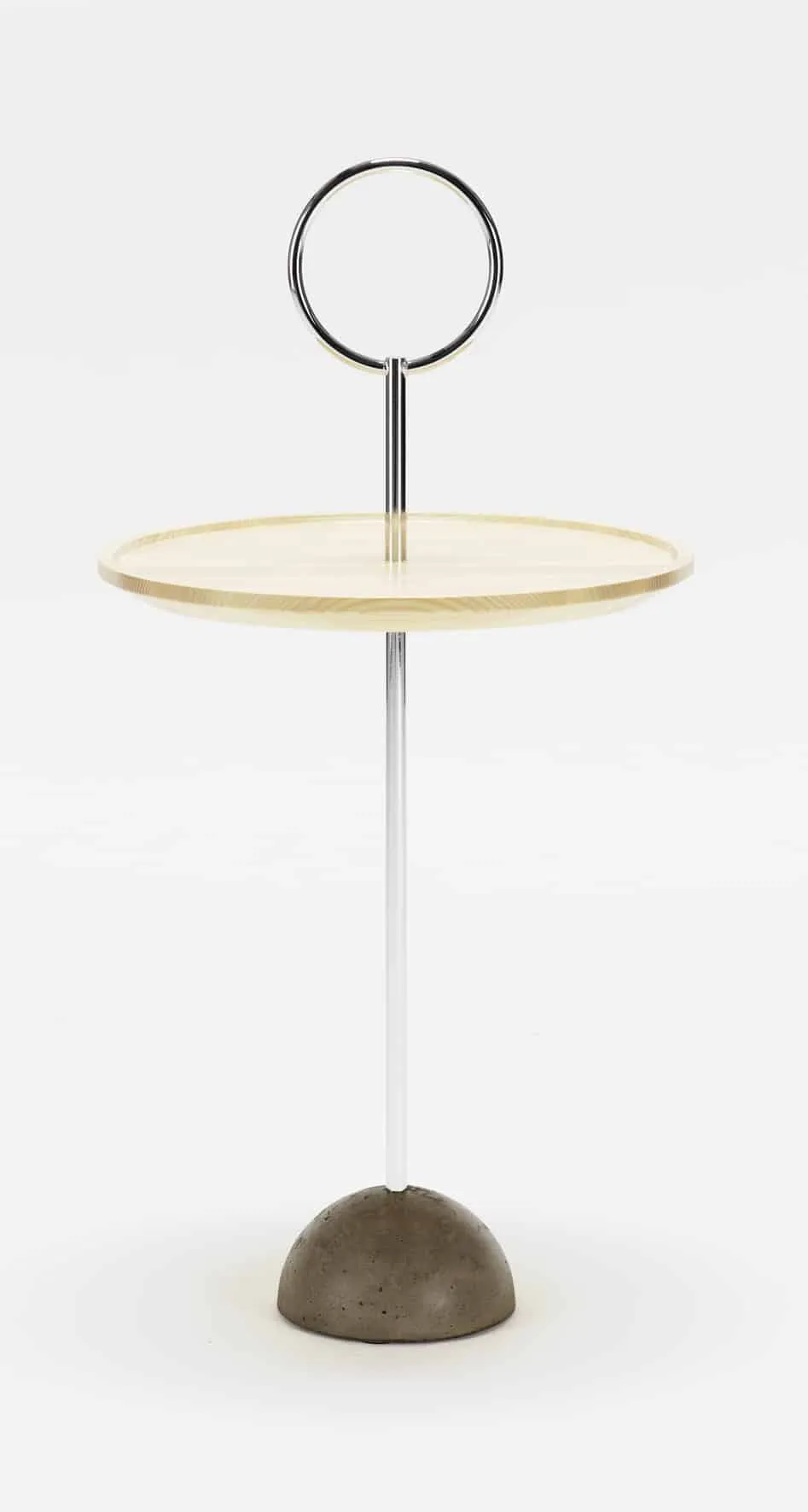 The various components are all based on the form of a circle or a sphere. The outsize ring serves as a handle but also adds to the light-hearted expression of the table. Malin is also the mind behind the coat racks Chess.