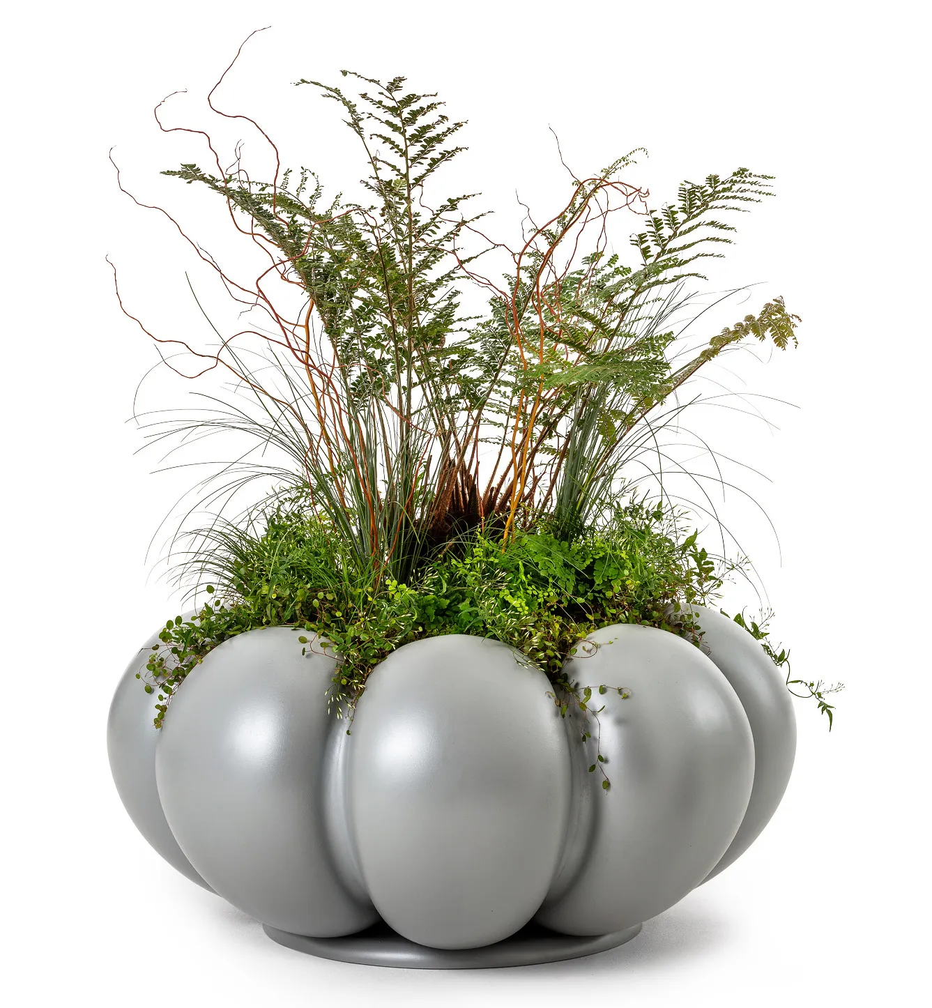 The lotus flower provided the inspiration for this exotic planter made in sandcast recycled aluminium. As a pure white flower that floats on the surface of murky waters, the lotus provides a symbol for inner purity in Buddhism and other Eastern traditions. The planter’s sculptural design captures the beauty of the petals’ rounded shapes as it creates a container for flowers, plants and ornamental trees. Clustering several planters together creates an attractive feature, while placing them in a row can provide a stylish means of dividing space. The planter’s unique style fits into a wide variety of outdoor settings and makes it possible to bring the natural world indoors. The planter also presents a moment for pause, inviting those passing by to reflect on the serenity symbolised by the lotus flower itself.