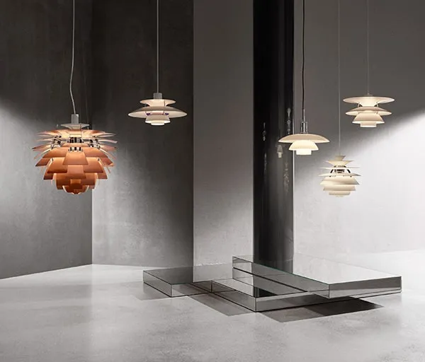 When Henningsen designed the iconic PH Artichoke for the Langelinie Pavillonen restaurant in Copenhagen in 1958, he opted for a copper construction and a rose finish on the leaves’ interiors. In honor of Henningsen’s birthday, Louis Poulsen is launching the PH Artichoke in this same, original pairing, known for its exceptional softness and warmth, in both its appearance and light output.