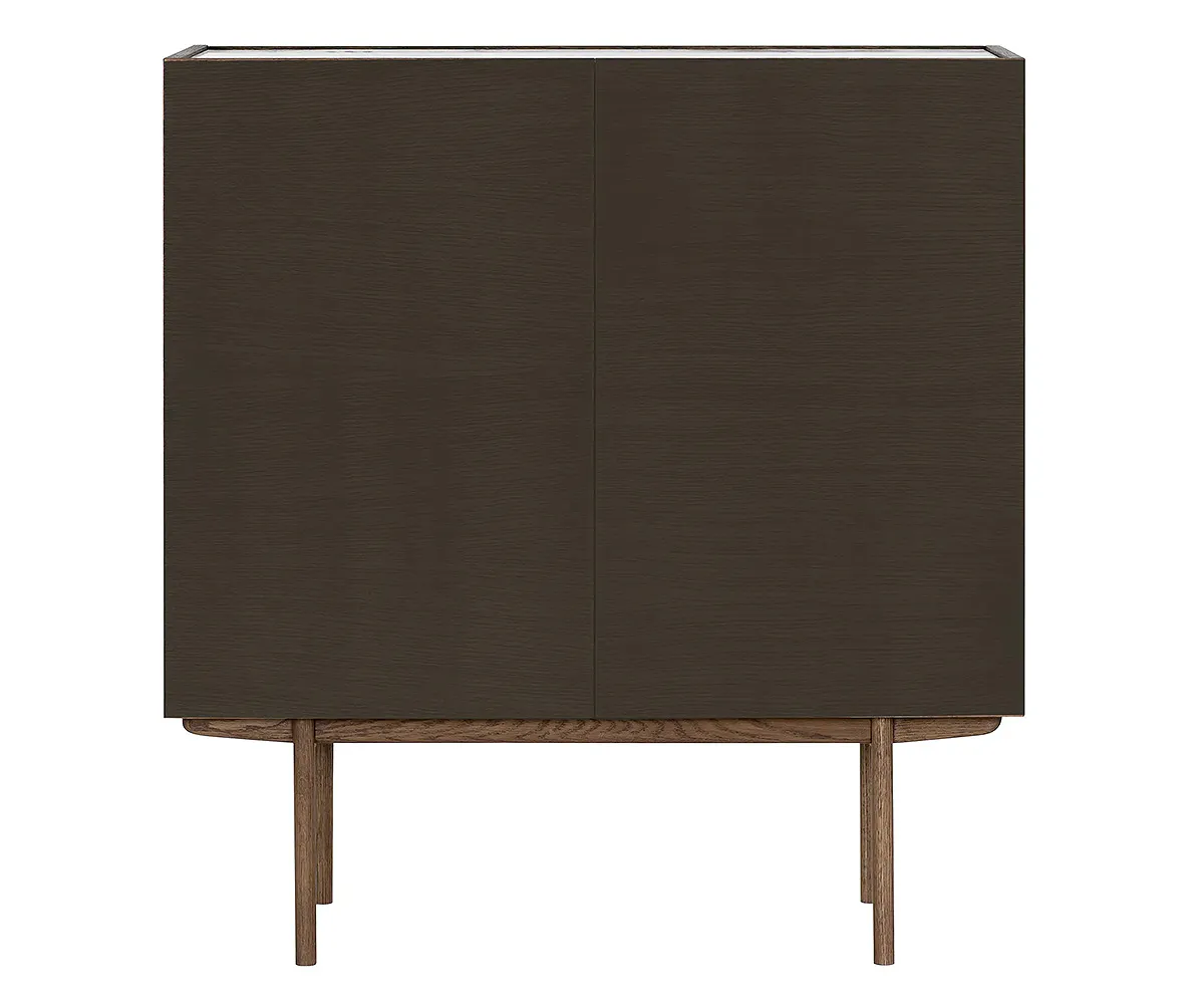 This 103 cm tall cabinet features lacquered oak veneer doors, solid wood base, and choice of glass or stone top. Available in six wood finishes and five stone options including Carrara Marble and Nero Marquina. The Swedish design duo’s 2024 creation exemplifies their signature blend of rational functionality and emotional resonance, offering customizable luxury storage that seamlessly integrates into contemporary interiors.