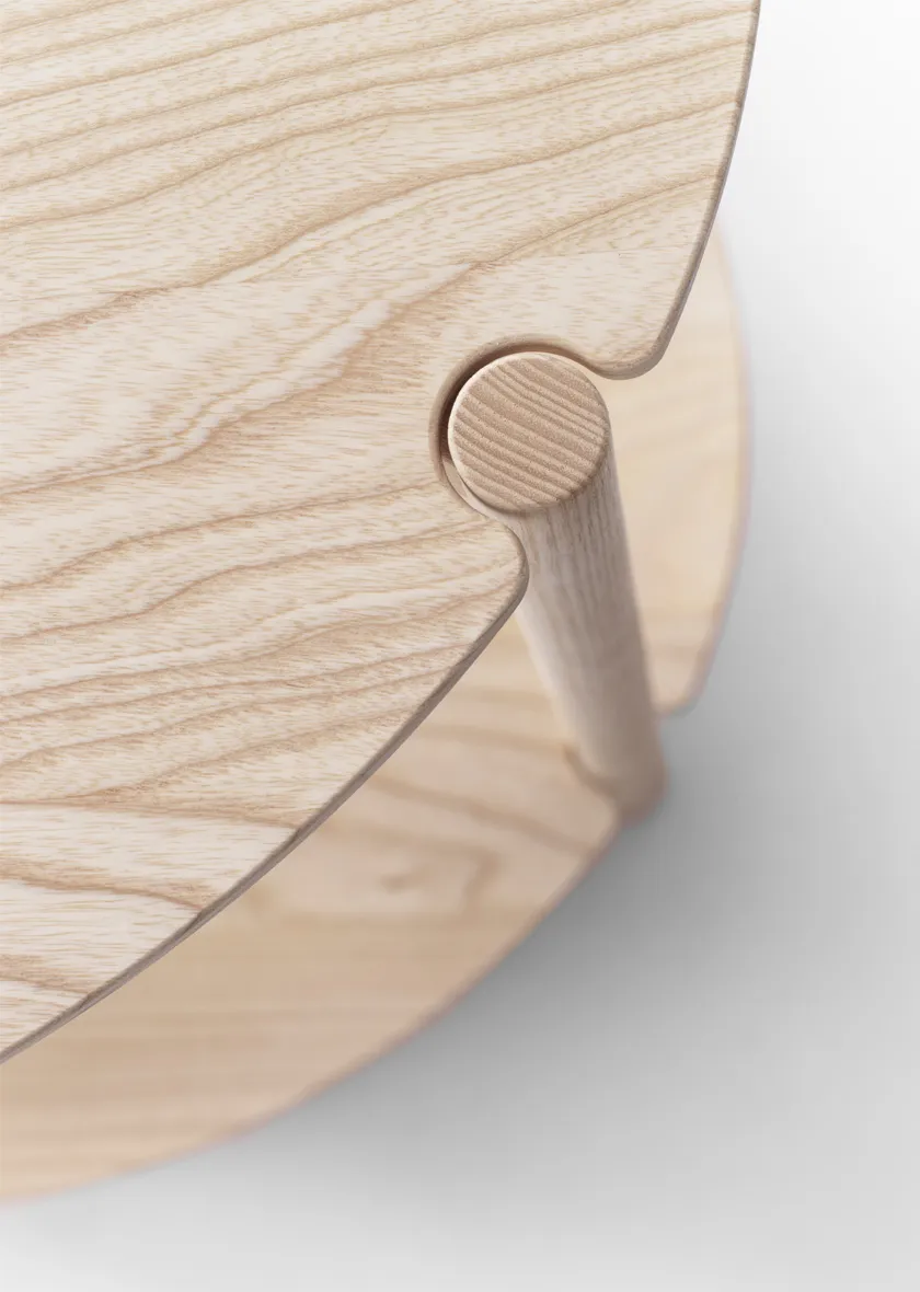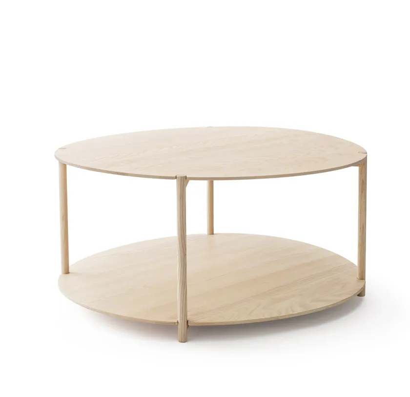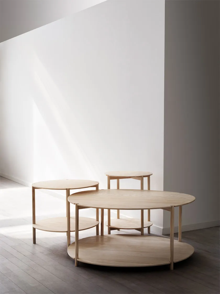 Lunaria works particularly well beside the Anita easy chair as it has a kinship through shared material and design characteristics. The Lunaria tables come in three different sizes. Made in natural ash treated with wax oil.