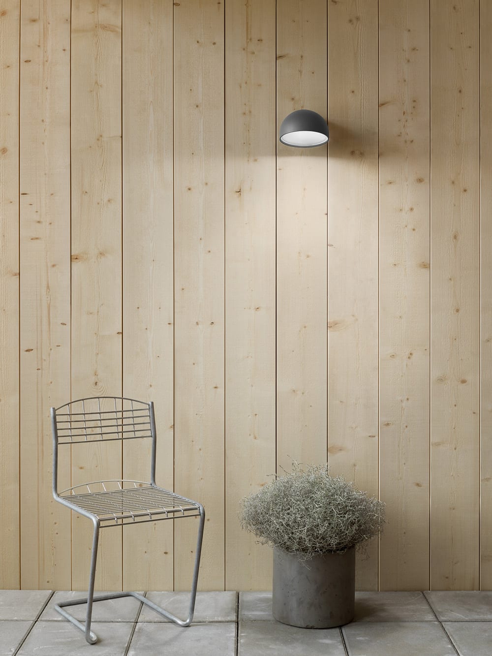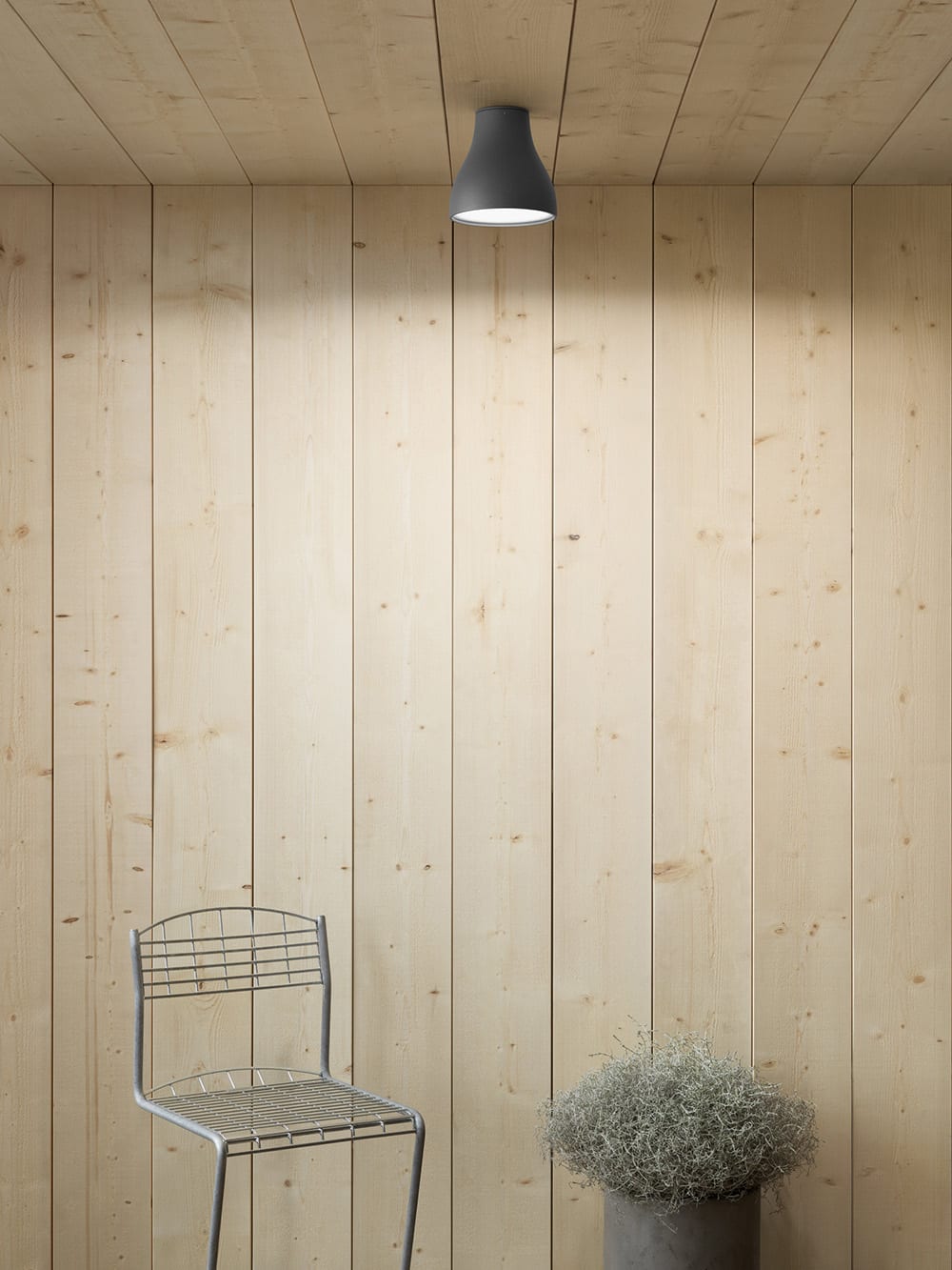 Lysters luminaire housing is made of aluminum by sand casting and has a slightly coarser surface, connected back to Byarum’s planting vessel.