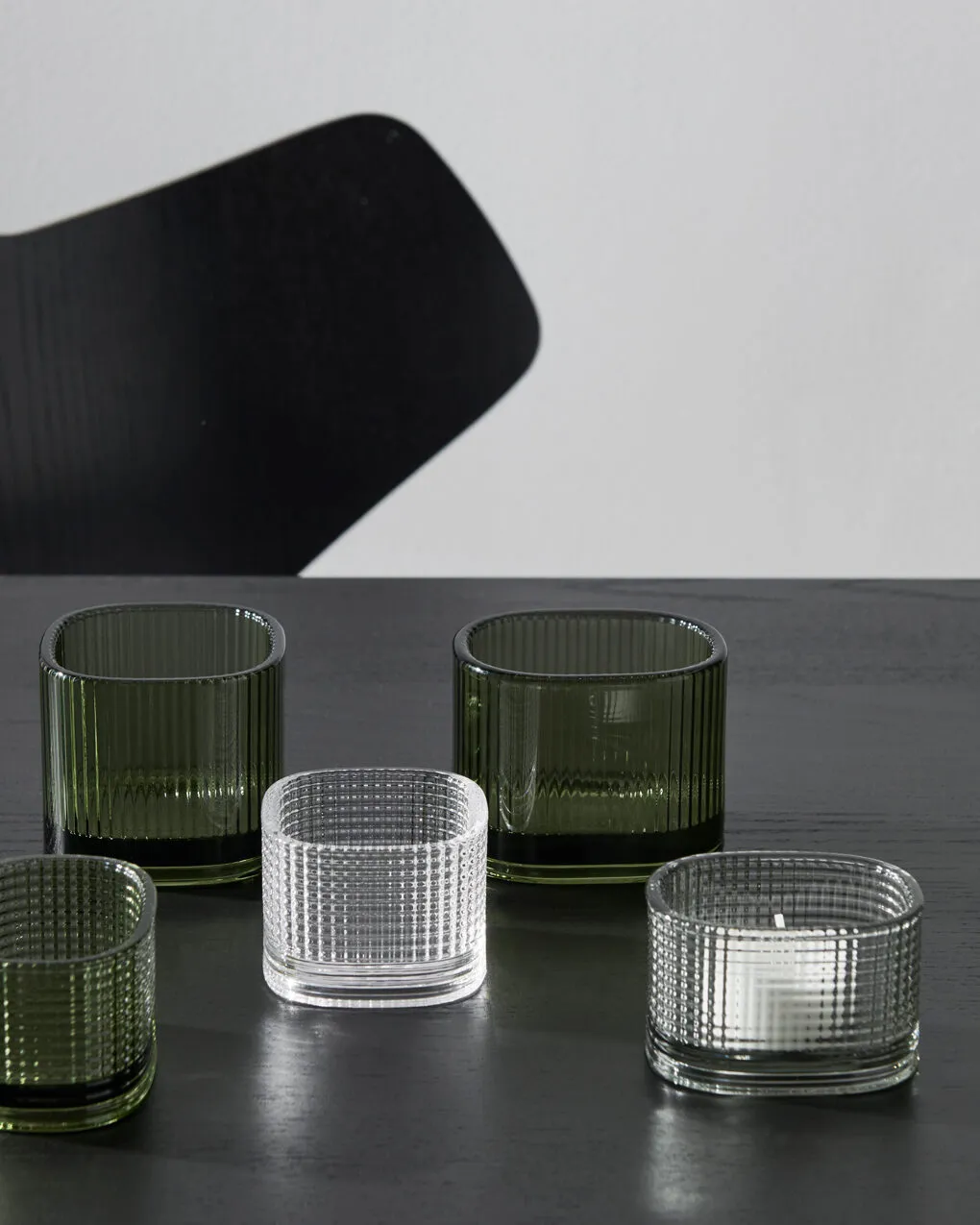 Magica votives design in collaboration with Orrefors, a premium heritage brand that created magnificent glass objects. Orrefors has been established in Swedish design tradition since 1898, characterized by timeless aesthetics, functionality, craftsmanship and sustainable quality. Magica is inspired by the glass on car headlights and how they reflect the light in a maximum way.