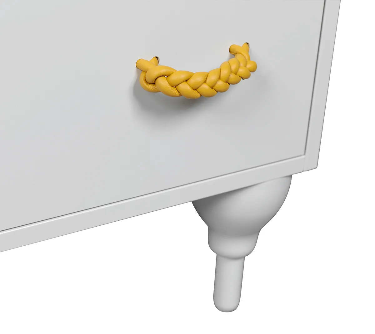 MAMA LOOK, chest of drawers by Anna Kraitz Lacquered frame, turned wooden legs, braided leather …
