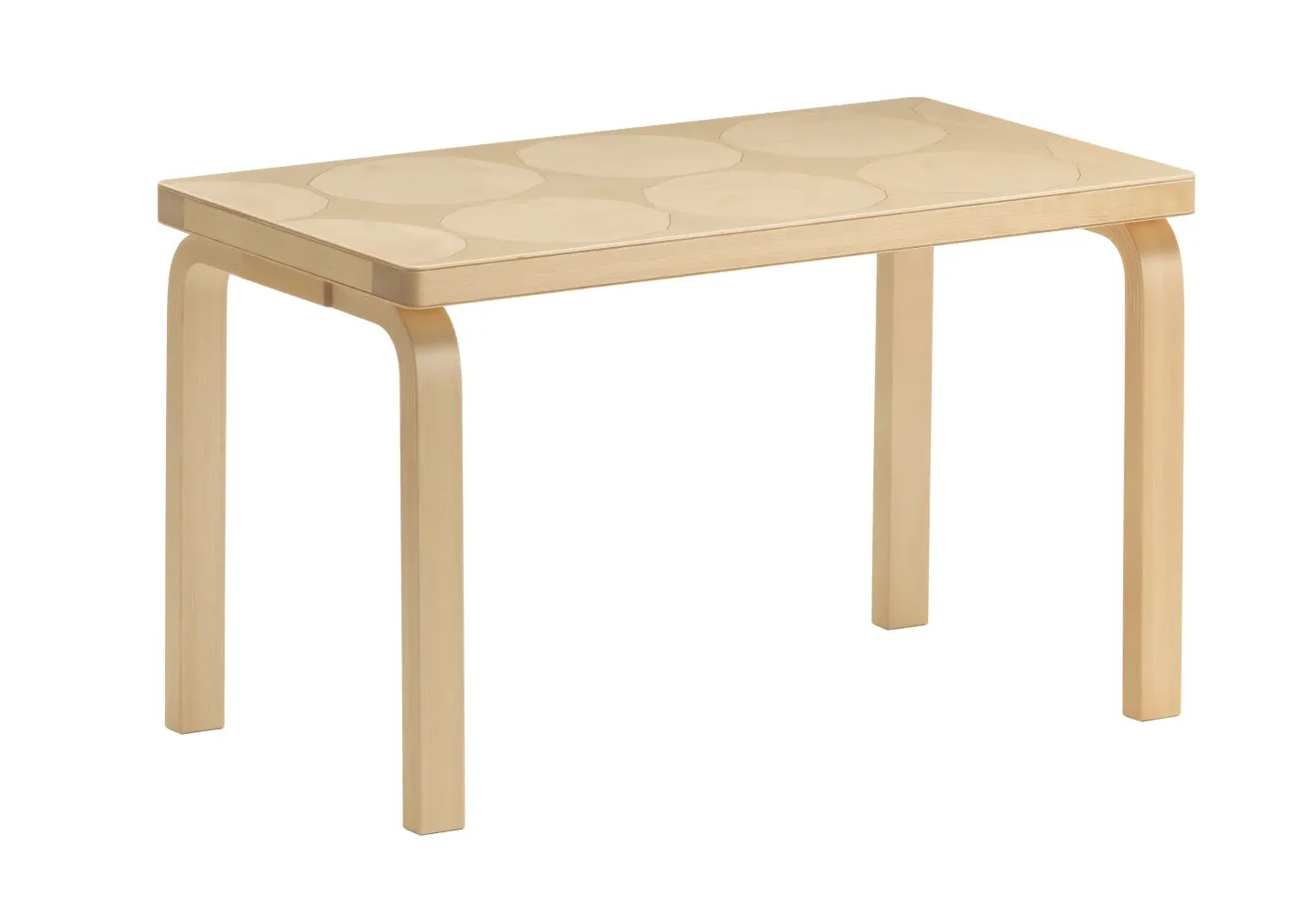 Table 90D Seireeni Round, versatile table combining Aalto’s birch furniture concept with Isola’s mythical siren-inspired pattern. Perfect for coffee table or bedside use.
