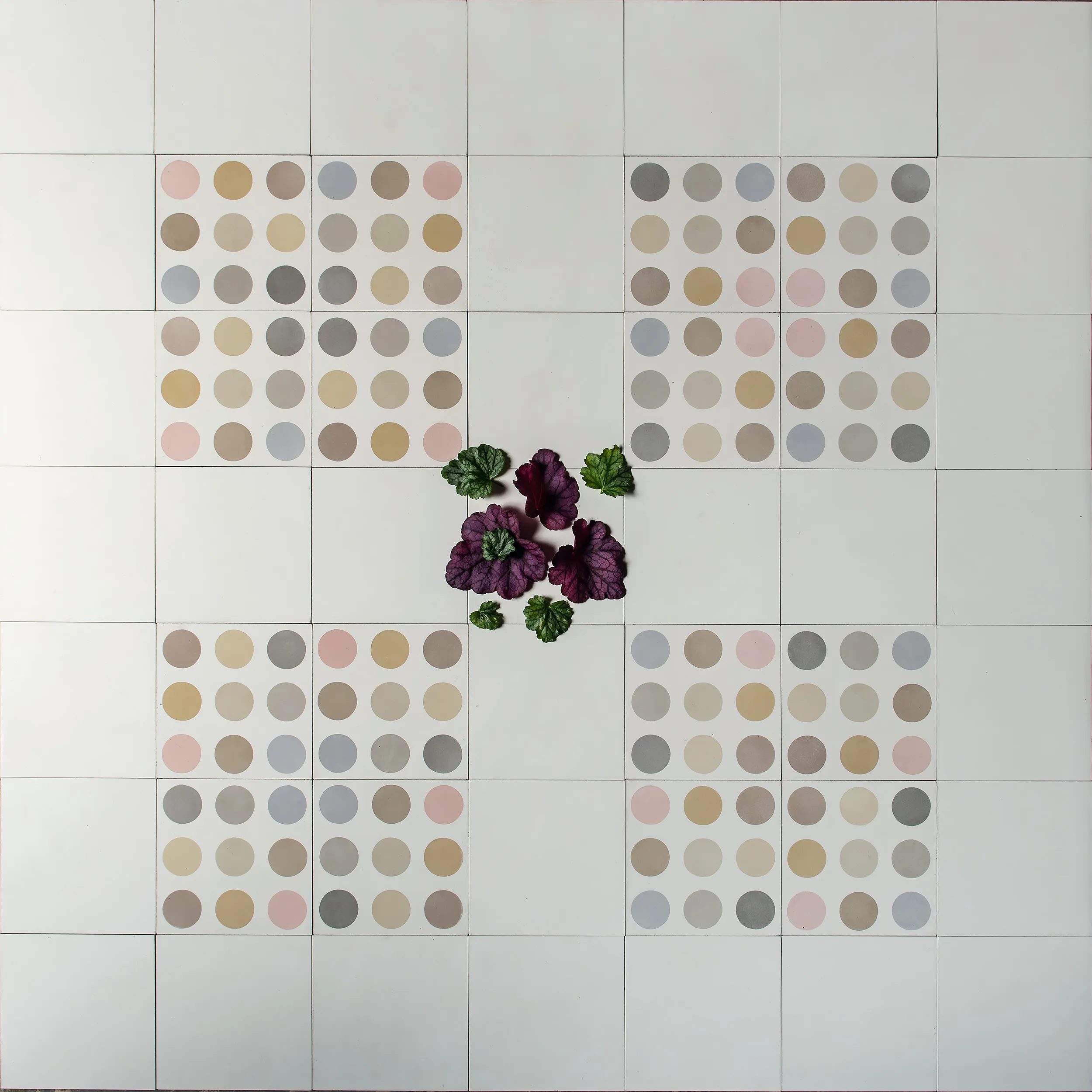 The series, in which the patterned cement tile has nine colour points of the same size, is available in three different variants with different intensities. Single-coloured tiles in the same colours complete the collection and create endless combination possibilities.