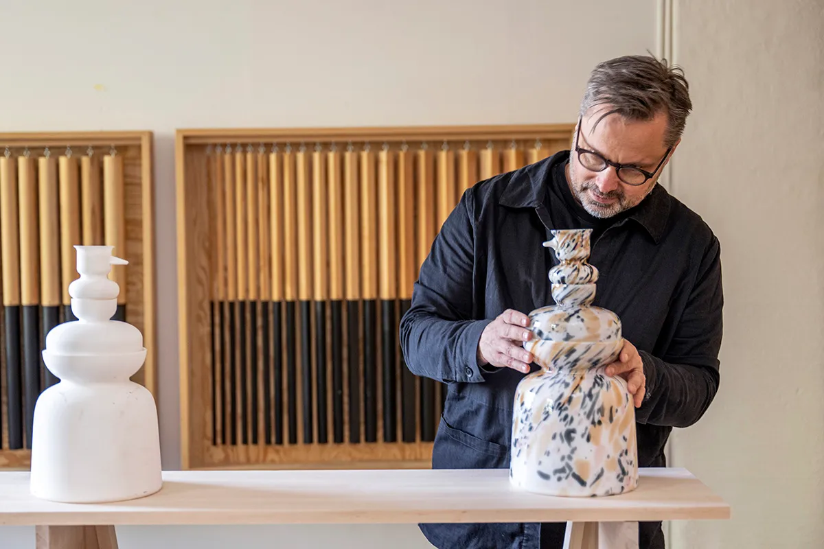 Iittala’s glassworks brings over a century of experience in producing demanding art glass through form-blowing techniques. The factory has previously collaborated with legendary designers including Alvar Aalto, Tapio Wirkkala, Timo Sarpaneva, and Oiva Toikka, establishing a tradition of excellence that continues with Klenell’s contemporary works.
