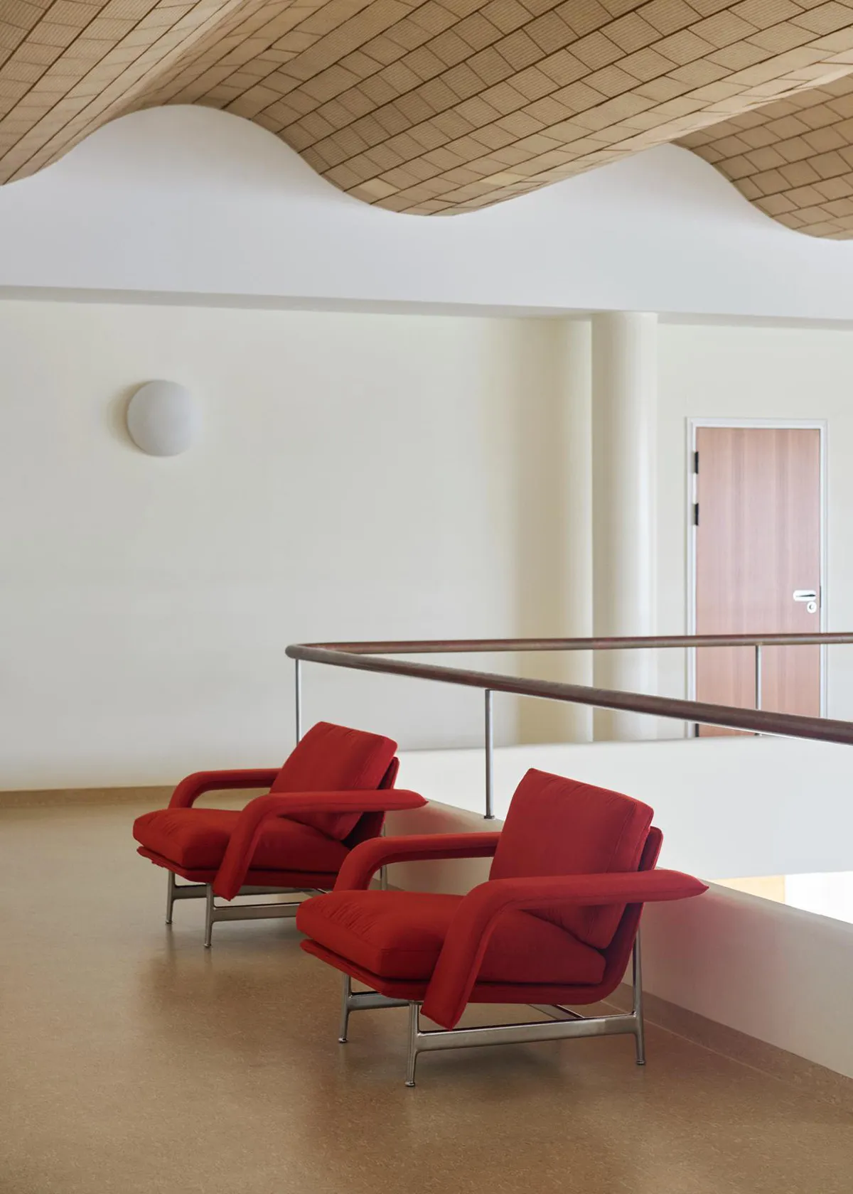 Torbjørn Anderssen comments: “The counter movement between the armrests and the shell the cushions rest on is the DNA of the project.” He continues: “We took, what could be described as a universal feature of public transport furniture and domesticated it. We like to think that while you’re sat in these types of spaces, you’re usually waiting for something good to happen, hence the name, Meantime.”