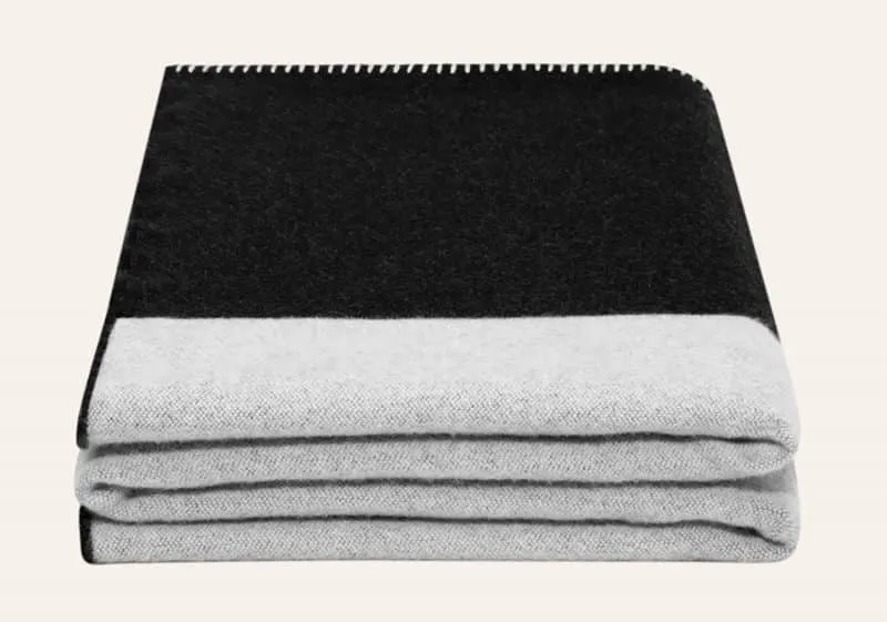 The blanket is available in Black/Grey and measures 135 × 210 cm. It is handcrafted at one of Scotland’s most established weaving mills — a facility with a history dating to 1866 — and made from a blend of 90% lambswool and 10% cashmere. The material specification reflects Wallén’s consistent attention to fibre quality: the combination of lambswool and cashmere produces a blanket with warmth, softness, and durability that positions the object as much as a long-term domestic investment as a designed piece.
