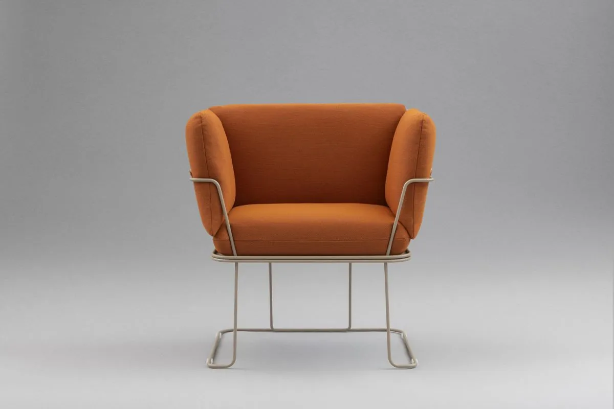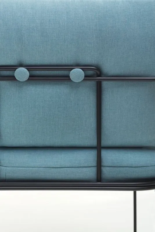 Merano combines the clean Scandinavian lines and details of Ilkka Suppanen with the ergonomics and the colorful touch of Raffaella Mangiarotti. Due to its special cushions, the Merano chair and sofa in the B-LINE catalog suitable for indoors or outdoor use, in both public and private areas. The shape of the frame is visually drawn of five continuous lines. These lines are realized in galvanized and painted steel rods, a material that the Company is already familiar with. Special attention has been paid to the easy transportation and storage of this furniture. The weight-bearing frame is divided into two parts which, when separated, decrease its volume and significantly reduce packaging size. Merano for B-LINE, 2017
